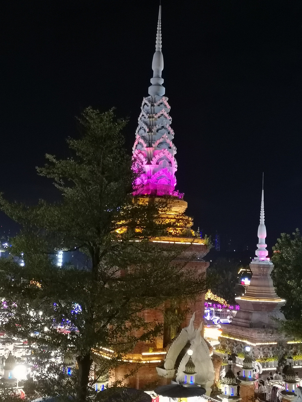 吃过晚饭,回酒店的途中经过大金塔寺。天还没黑,大金塔寺还没有被灯光点亮,但在阳光的照射下闪着金光,依然非常漂亮。从上面望下去,只有星星点点的摊位在做着出摊前的准备。这时的人不多,于是在此逗留了一会儿才回酒店。