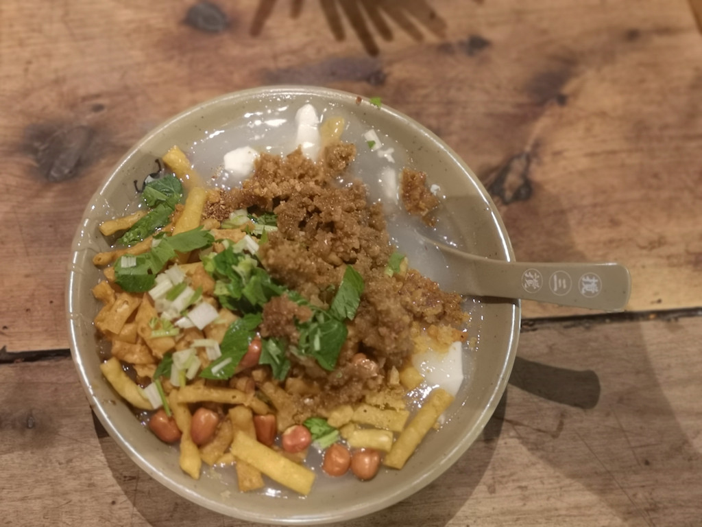 这里的豆腐脑里面添加了酥肉和许多炸物,有点油腻吃不习惯。