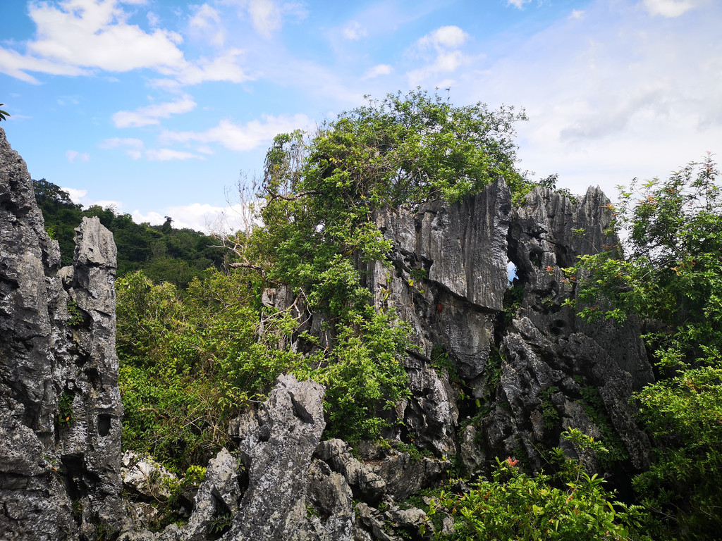 在绿石林景区满眼都是层层叠叠不见天日的原始森林,林间处处藤曼缠绕。森林里的生存竞争是异常残酷的,植物们经过亿万年的进化,衍生出树根如瀑、大板根、绞杀榕等奇异现象。