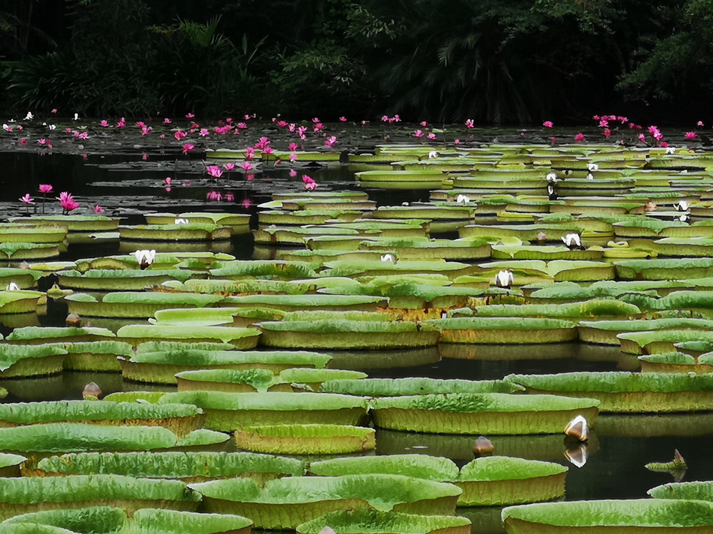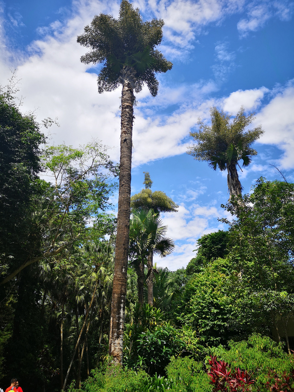 我们先游览西区,首先来到水生植物园,水池中生长的有着巨大叶片的王莲格外引人注目,许多人在这里拍照。接着经过棕榈园、奇花异卉园、名人名树园、国树国花园等多个专类植物园区,最后来到藤本园。导游一边走一边介绍各种植物,我们边走边看。可惜我们来的季节不对,错过了大多数植物的花期,一路看下来也没记住几种植物的名字。