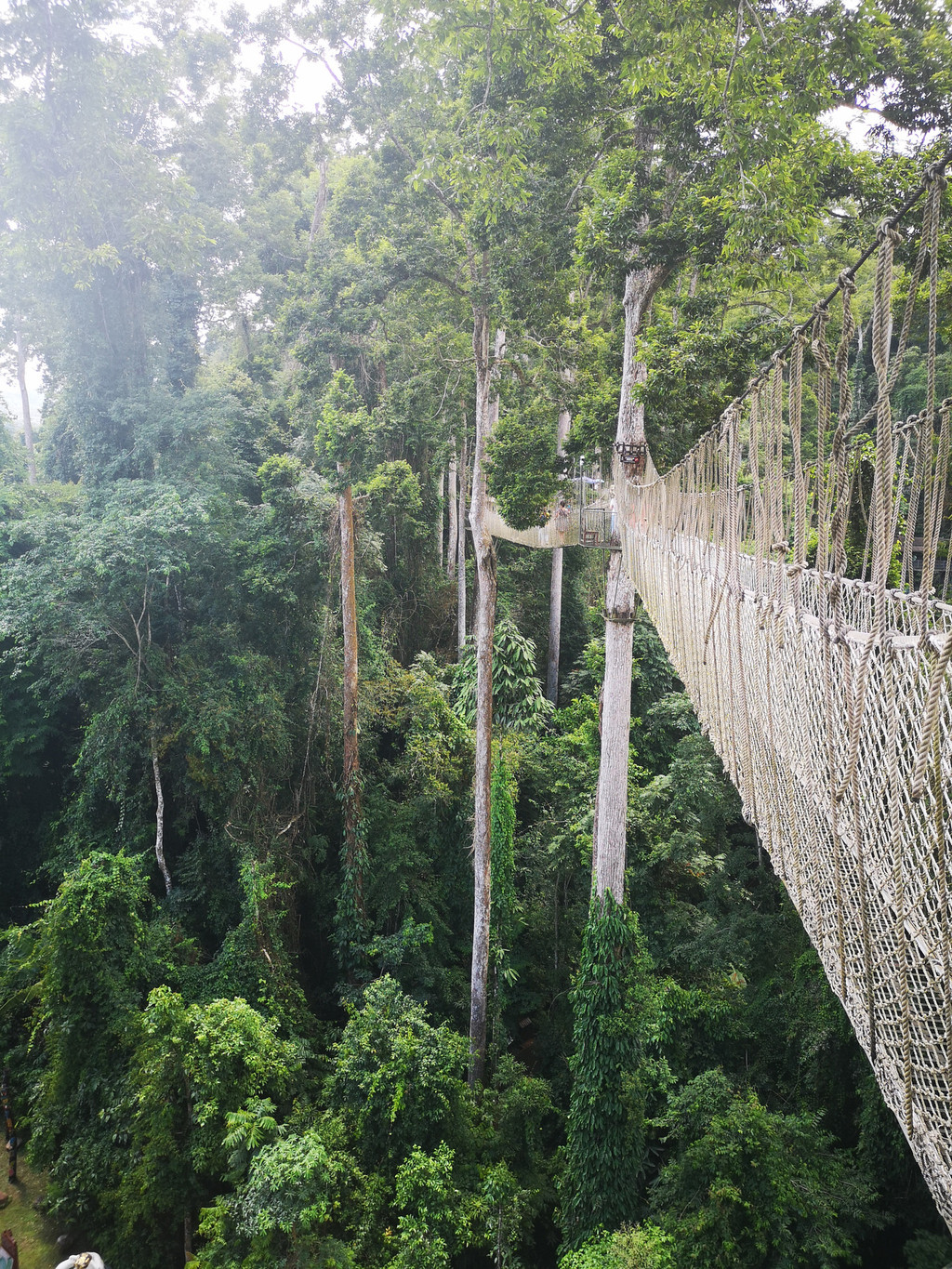 在空中走廊上行走,大家都小心翼翼地体验着那种在树冠间穿行的令人既惊又险的感觉。