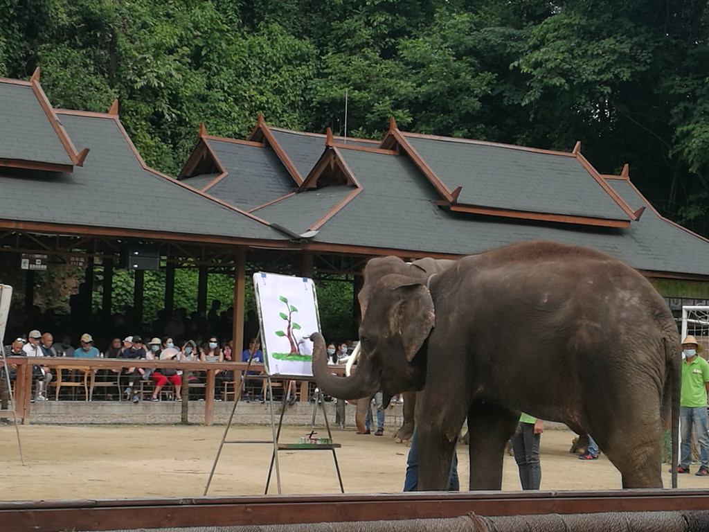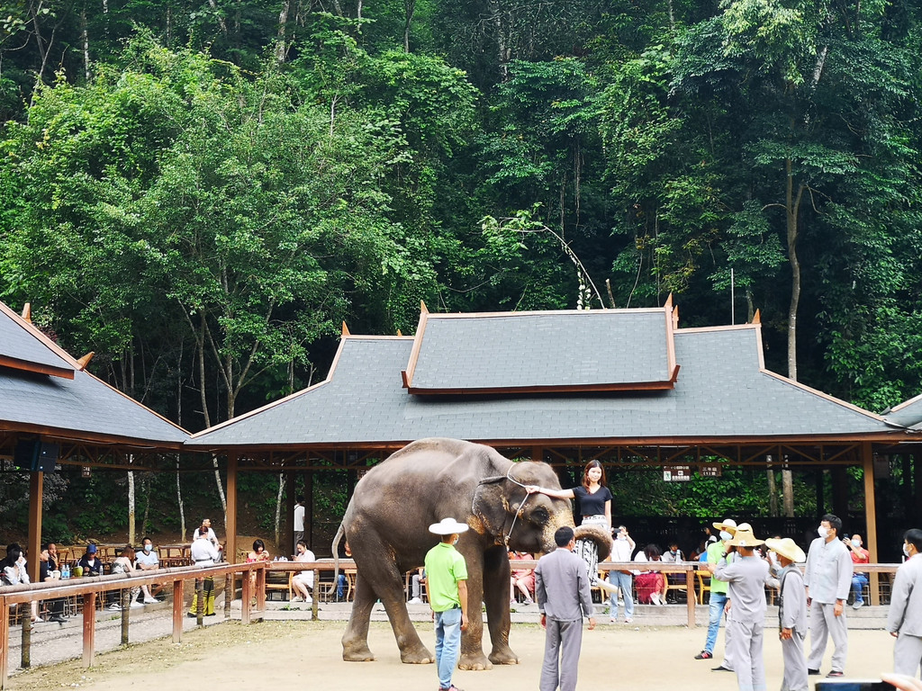 进入景区正好赶上亚洲象表演时间,袁师傅先带我们去看表演。大象是很聪明的动物,经过训练,它们的表演活泼有趣。