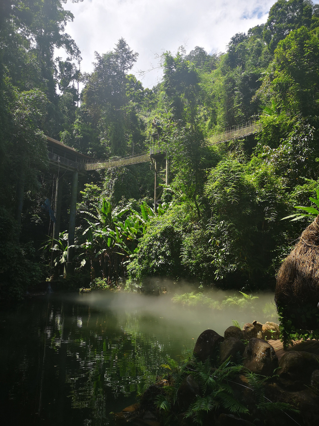 栈道全长1000多米,距离地面平均高度15米,运气好的话可以看到在地面上活动的野象。我们没有看到野象,但栈道架设在密林中,行走在栈道上,可以近距离的观看生长在高处的雨林植物,也能从另一角度了解热带雨林植物。