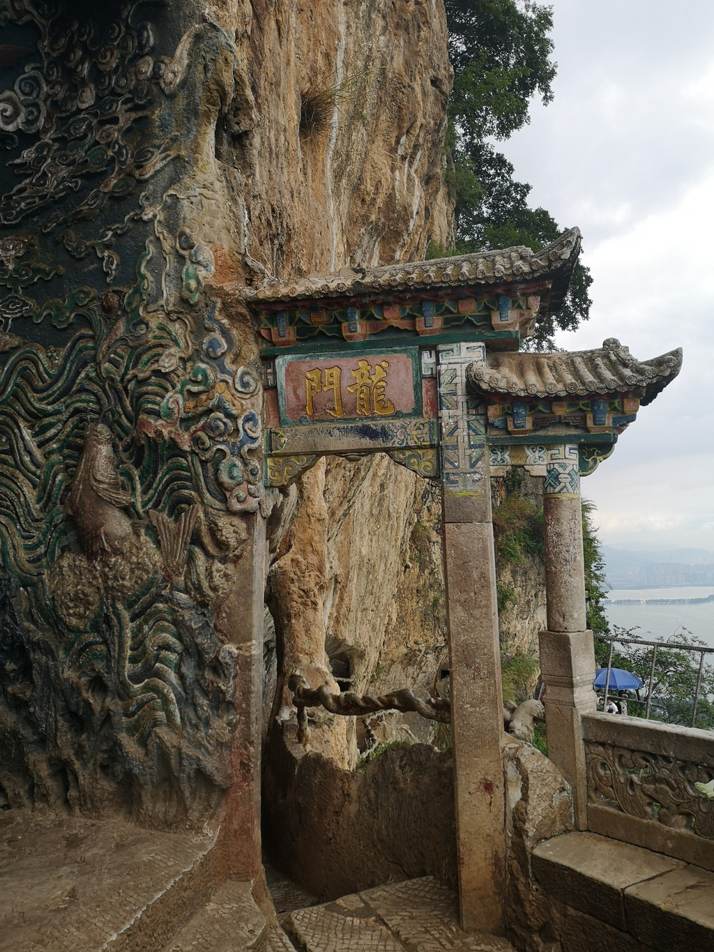 龙门石窟位于昆明西山森林公园终端,北起三清阁,南至达天阁。龙门是一组构建在西山主峰罗汉山悬崖峭壁上的建筑群,有九层十一阁。龙门石雕工程,包括石道、古室、古栏、古窟、古佛等。“龙门胜景”以“奇、绝、险、幽”为特色,雄居昆明西山众多的名胜之首,是云南最大、最精美的道教石窟,是西山胜境的精华所在。