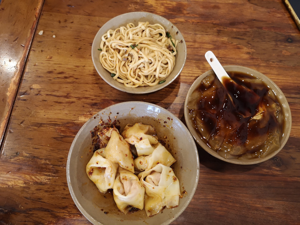 一大早跟着导航来到一家专门经营成都小吃的店铺,叫小名堂担担甜水面。点了成都的担担面和其他的几样小吃,味道都很好。