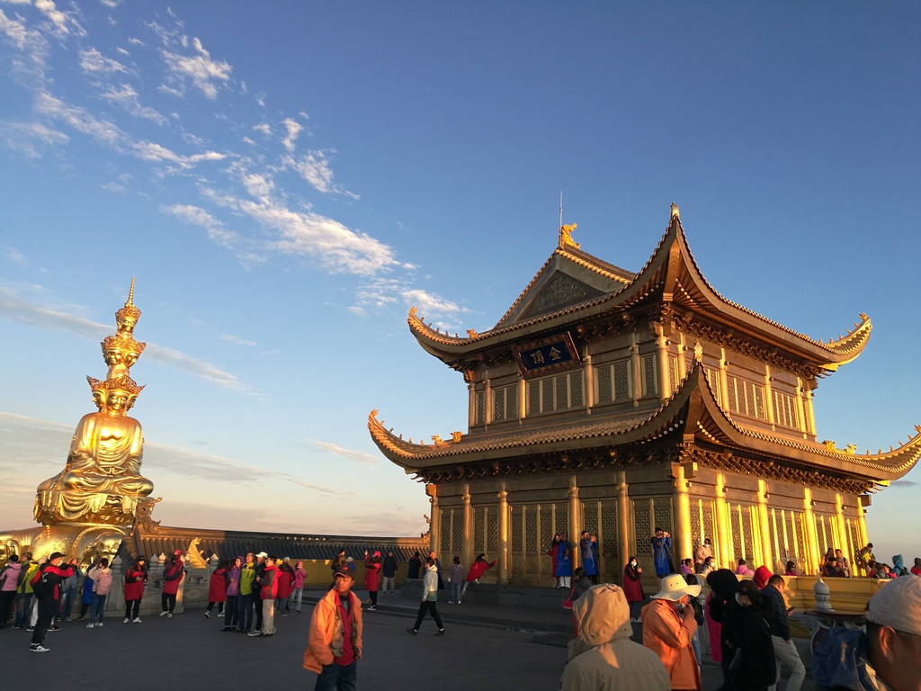 峨眉山金顶是峨眉山寺庙和景点最集中的地方,名胜云集,为峨眉精华所在,是峨眉山的象征。峨眉山金顶,也称华藏寺,始建于唐朝,屋顶为锡瓦所盖,元代时又被称为“银顶”。在金顶可观看峨眉四大奇观--日出、云海、佛光、圣灯。