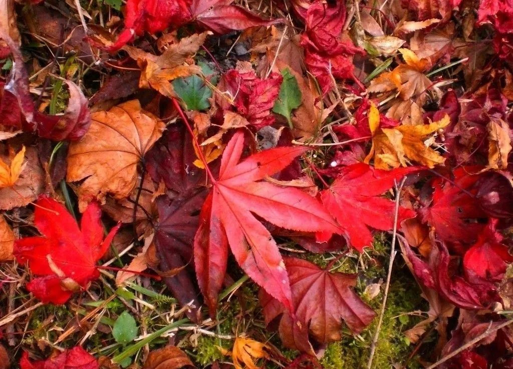 枫叶的红色在其他颜色的衬托下显得更加浓郁和突出,时不时山风吹过,树下落在鲜红的叶子,此时只要拾一片就可将这绚烂的色彩留住。