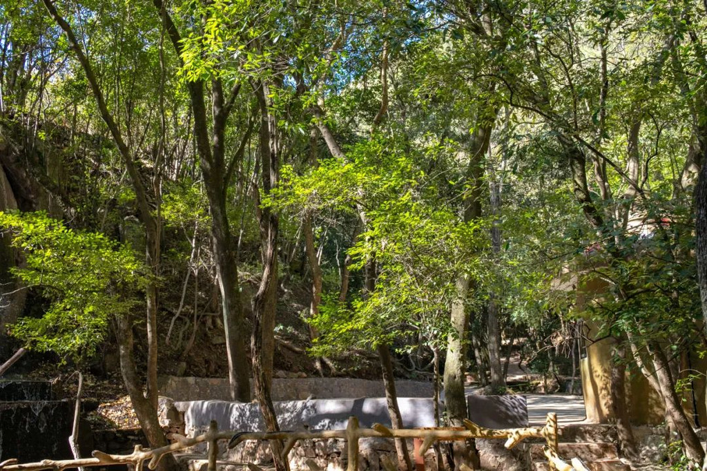 进入青龙峡景区,沿着步道向山顶攀登,各种树木交织的密林里呈现出和一个月前不同的颜色,不同程度的黄色中夹杂着红色和绿色。