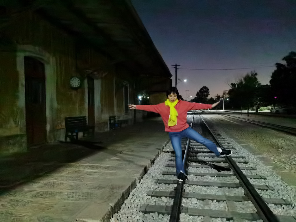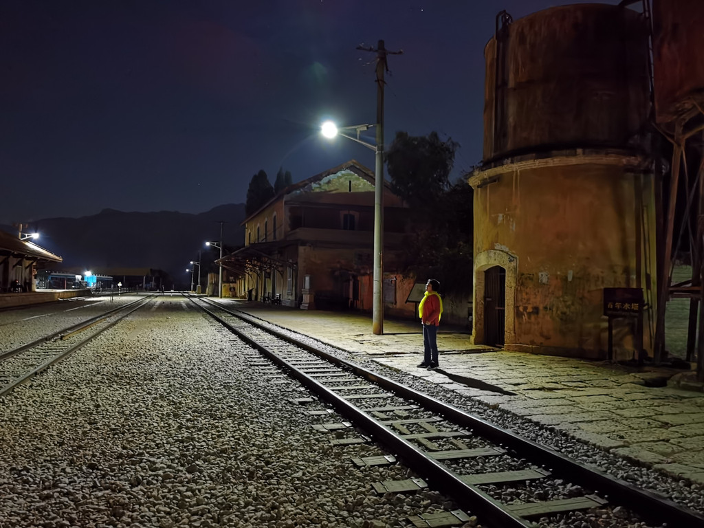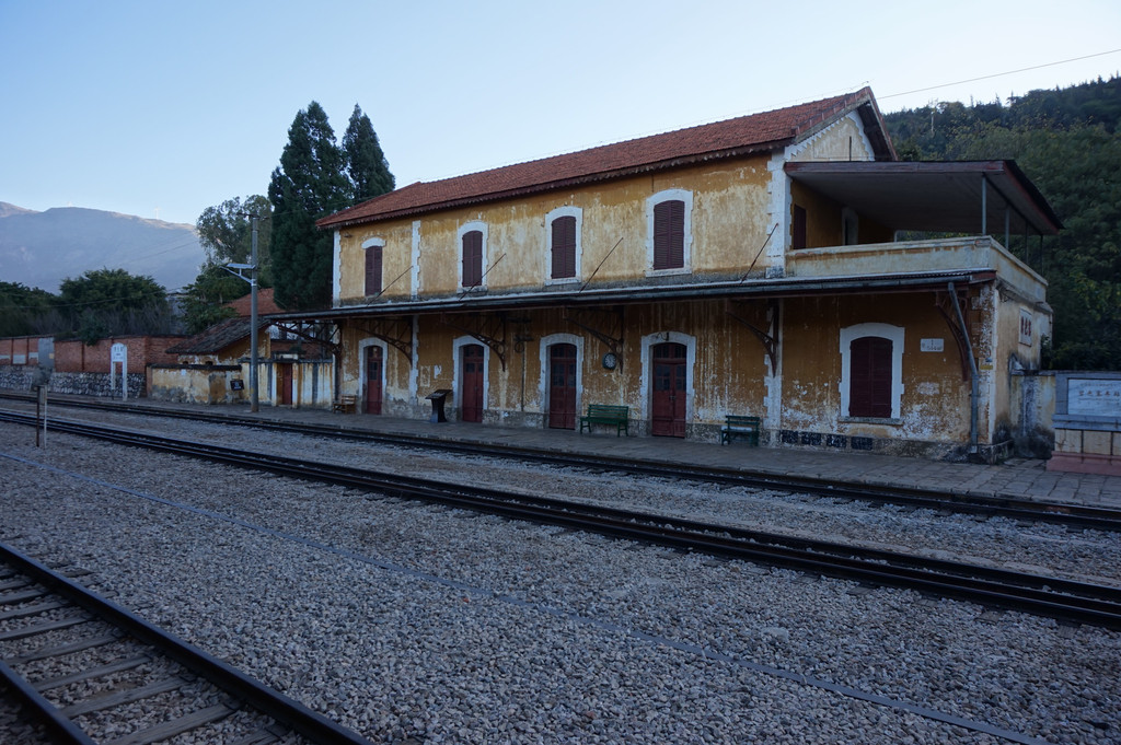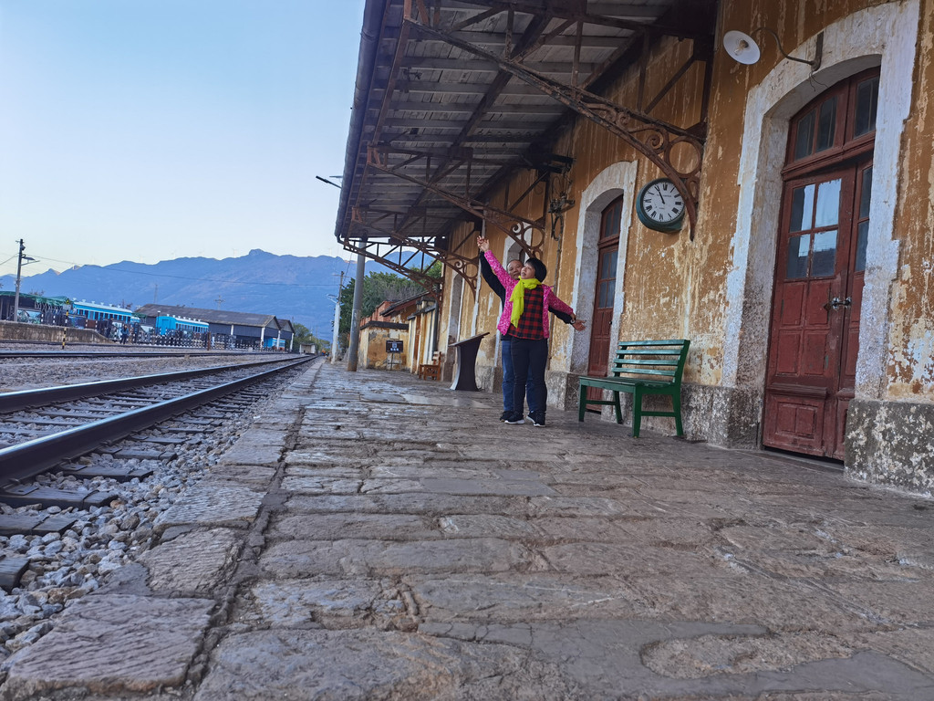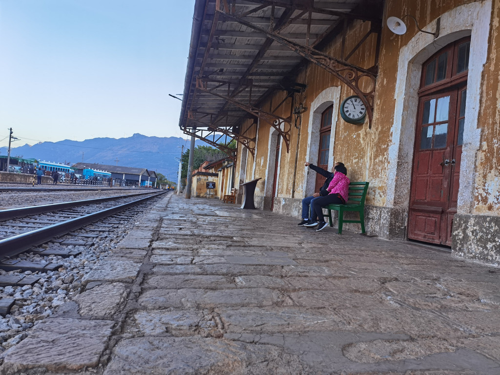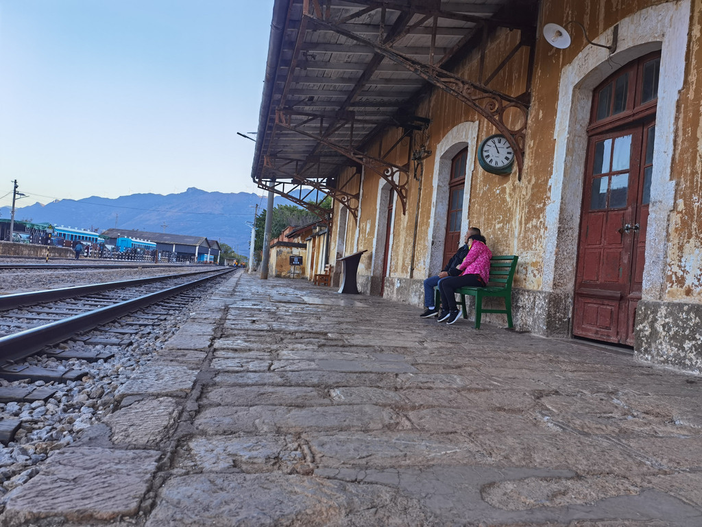 晚6点,到达碧色寨小镇,我们订了车站旁的梵间酒店,是一间有100多年历史的旧房改造而成的酒店,非常有特色,整理好行李,天色一逐渐灰暗下来,住在外面的游客已逐渐散去,肚子毫无饿意的我们便来到了车站,好好地享受这宁静的美景。
