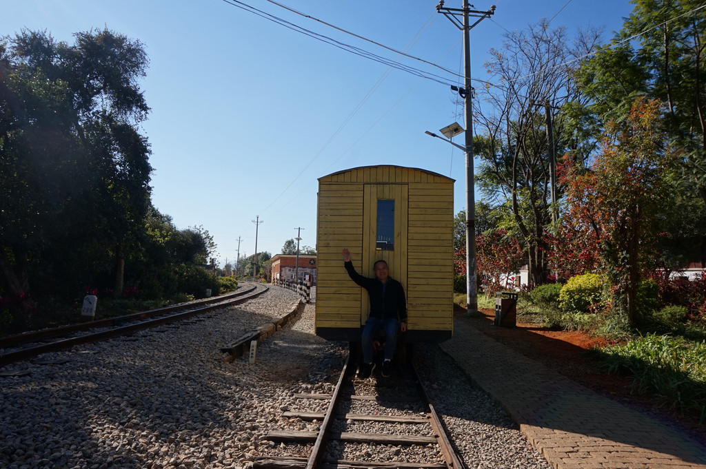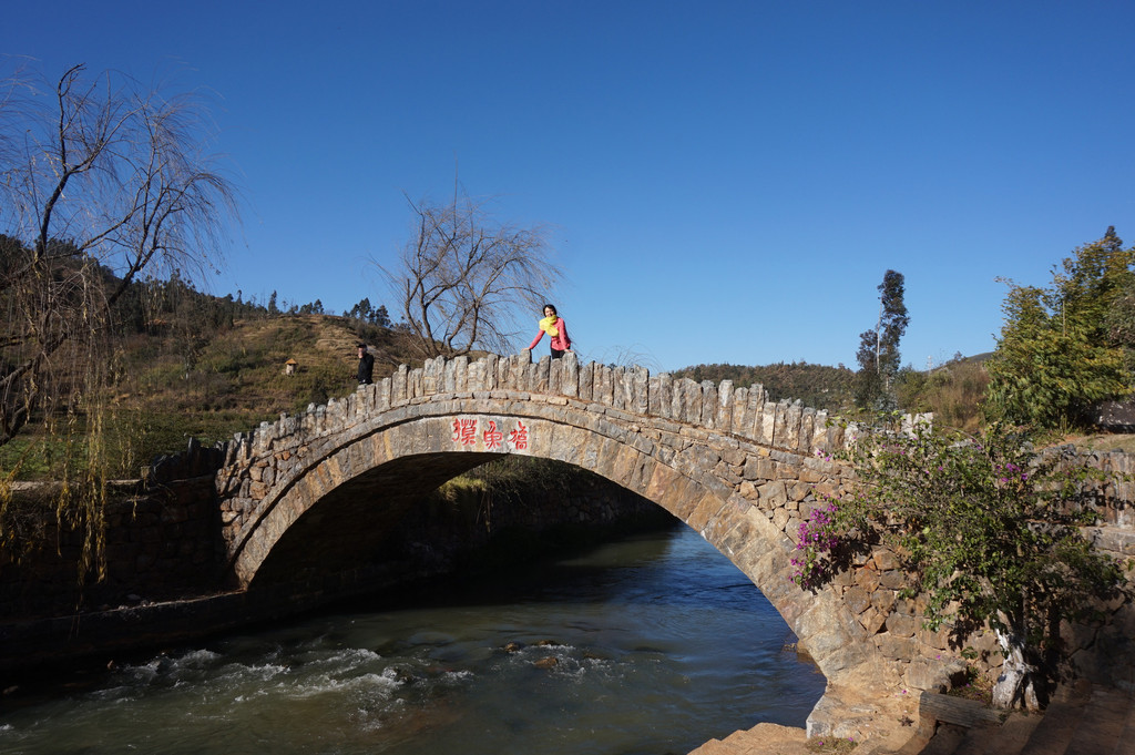 两个小时的车程,途中经过多外风景优美的星云湖、枸麓湖等地方,一转眼已到建水,依导航来到了双龙桥。桥旁的建水米轨小火车观光铁路,是在上世纪30年代由法国建造的,个(个旧)碧(碧色寨)石(石屏)铁路段的建水东至团山间线路改造而来。起至临安站,经双龙桥站、乡会桥站,最后至团山站, 沿途是滇南田野风光,坐在木制车厢里,一路上“咣当,咣当,呜……”,别有一番年代感。