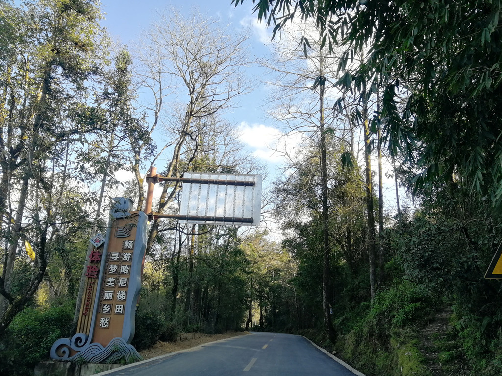 在元阳县城往元阳梯田的崎岖县道上,一条峡谷沿着两旁峻岭之间漫延,只见两旁高山林立,山顶之处可见一片片村落群,一路上还在感叹着村民们的辛勤和智慧时,已见一个牌子立在眼前,上书写着“畅游哈尼梯田,寻梦美丽乡愁”,我们已不知不觉中到了景区。