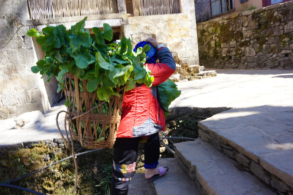 村民的运输工具,在外都是用竹篓装农作物,背负而回。