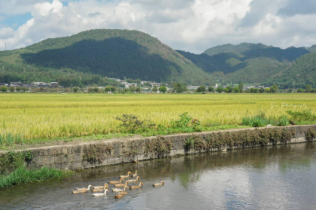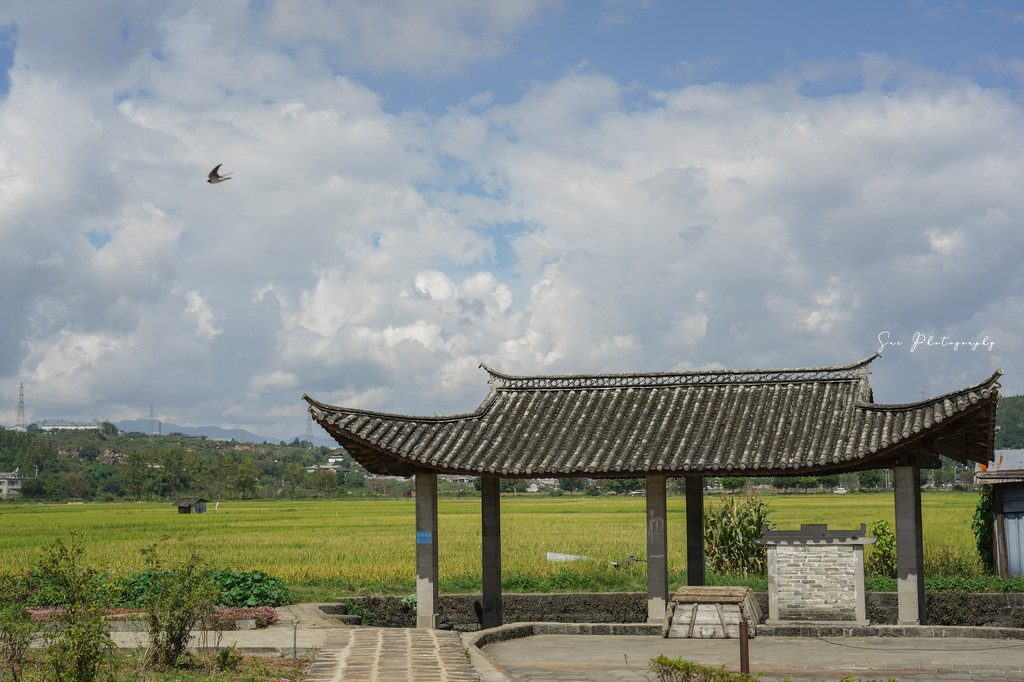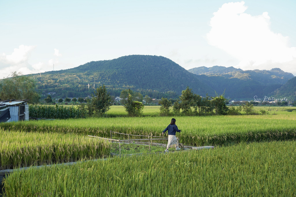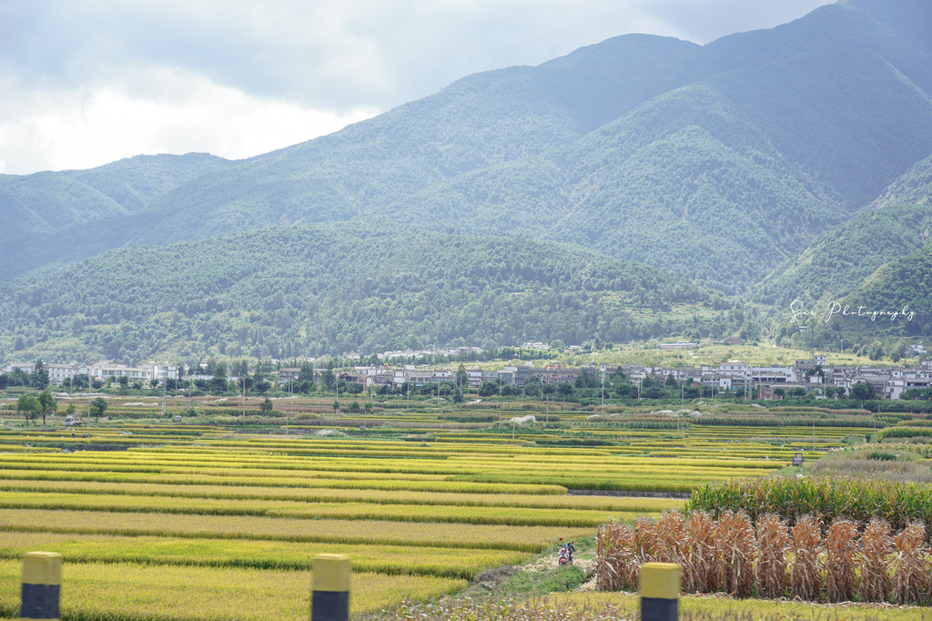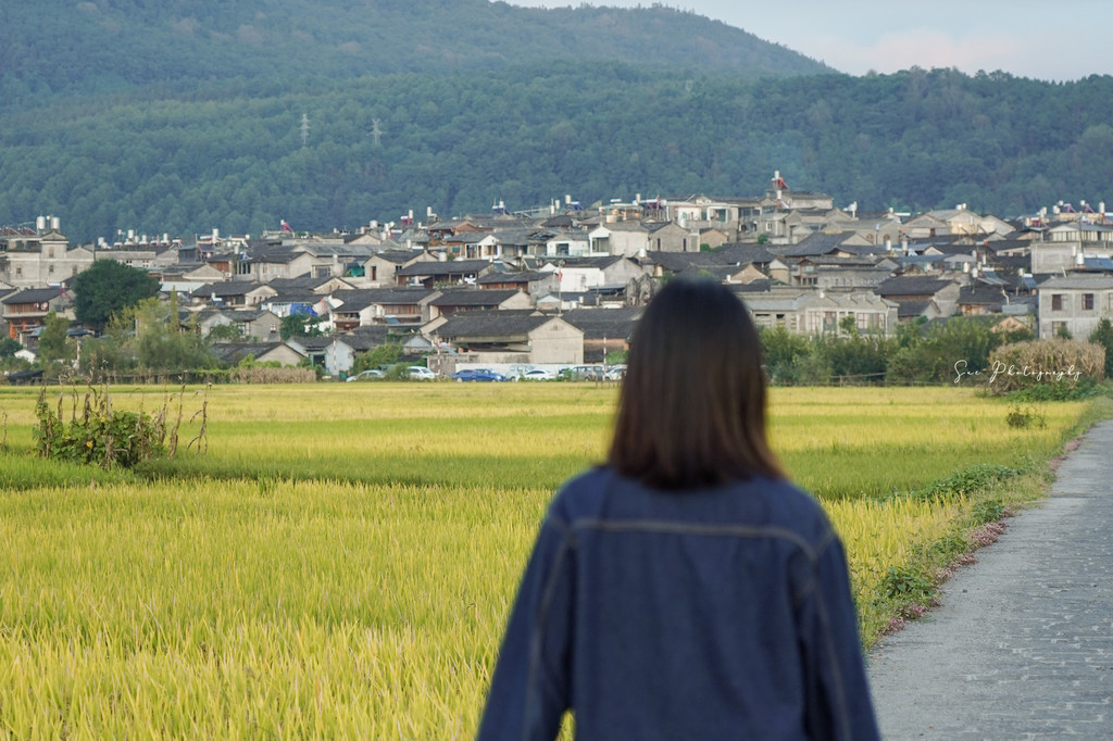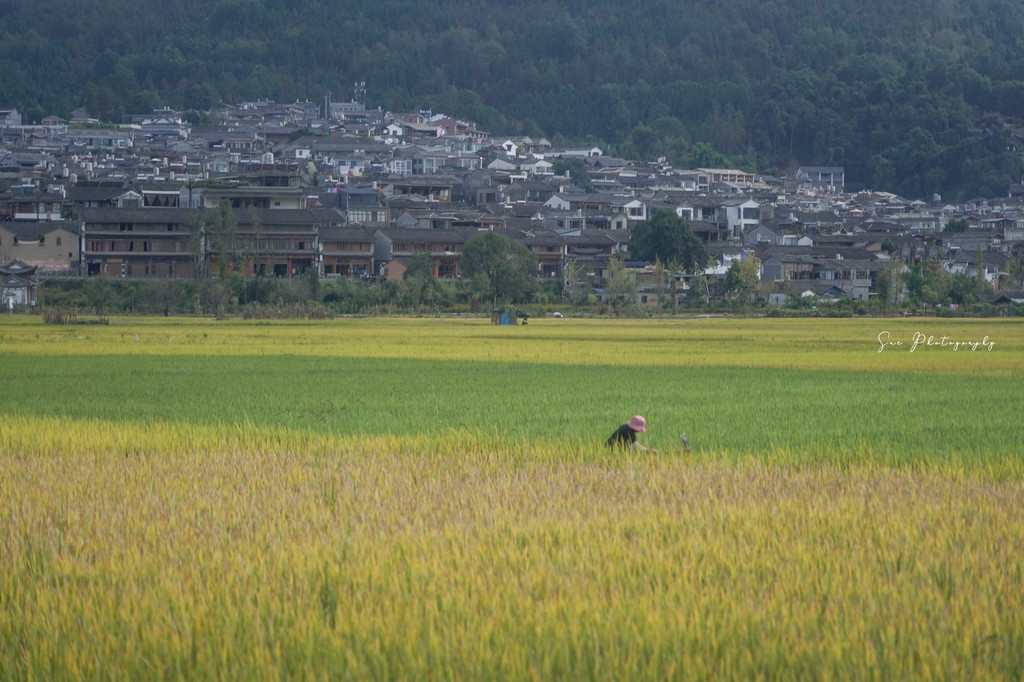 依偎着和顺古镇的一整片稻田,实在是很好拍,一望无际的金黄稻田在丰收的季节,已经长到一米之高,让新鲜感十足的城里人在这里拍了许久不愿离去…