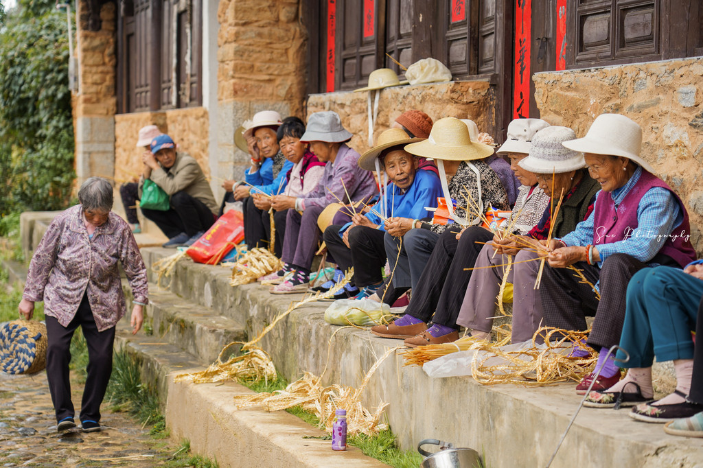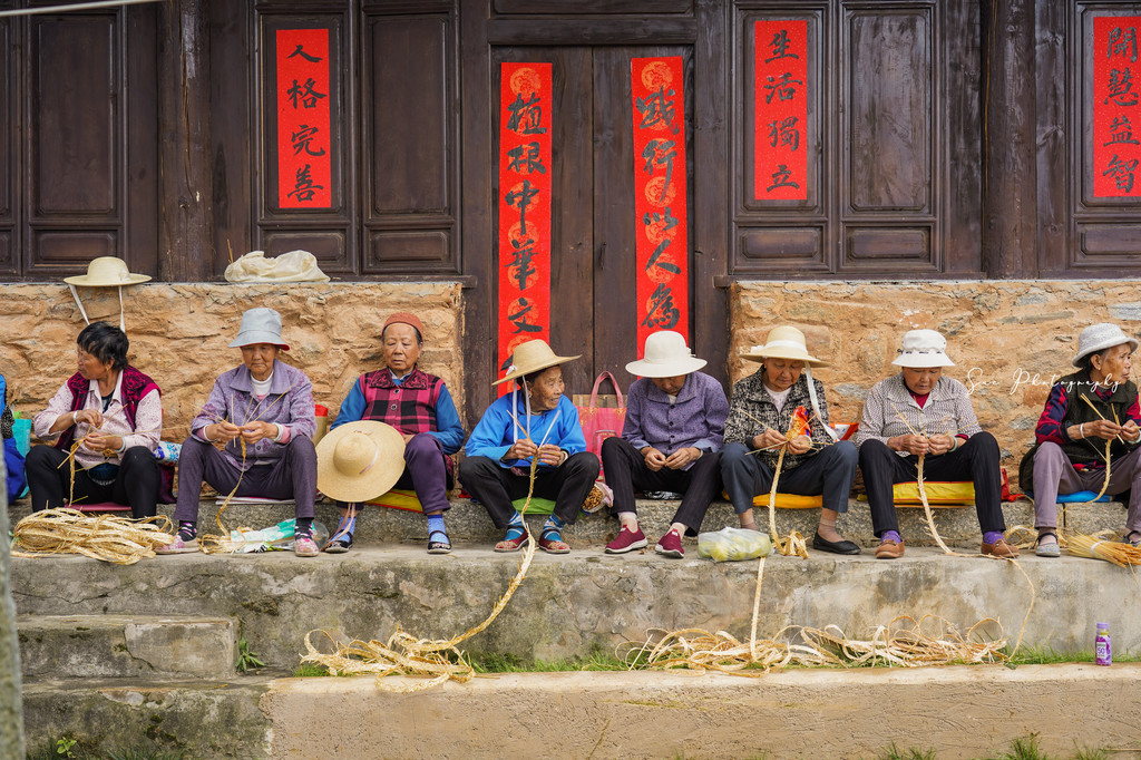 偶遇一群老太太,神态各异地在破旧的屋檐下编着草帽,或左右闲聊、或埋头工作、或闭目养神,这是我觉得最好看的一幕画面了。