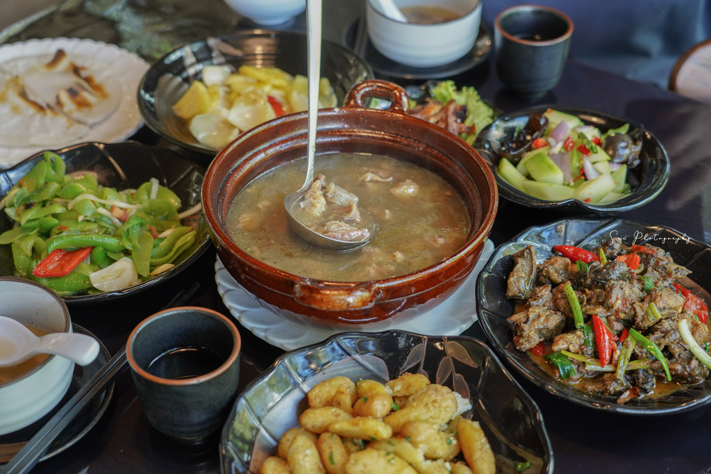 茶园里的餐厅两个人抵消是200元,三人以上一位68元,其实人多性价比更高,无需点菜,菜品根据当季食材来上,大概有八九个菜,驼峰牛肉锅实在太好吃了,牛肉味十分足,菜品分量大,吃得一口满足。