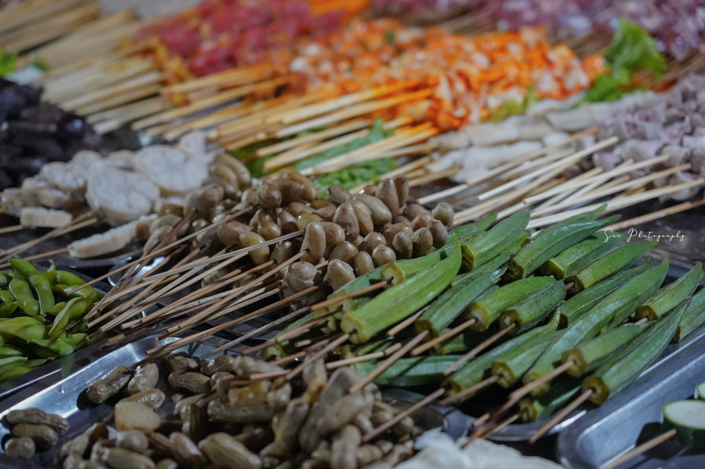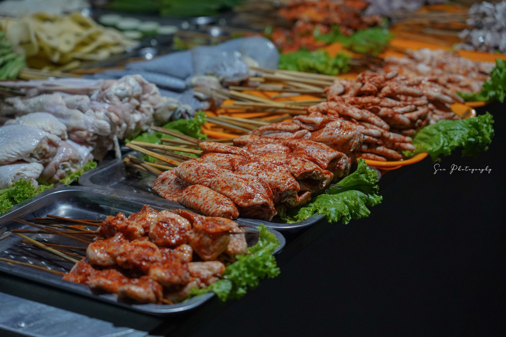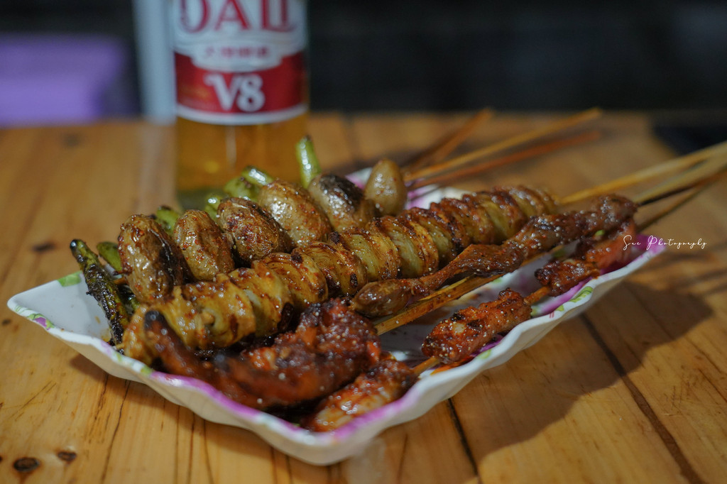 民宿姐姐告诉我们,烧烤一定要吃腌制类的,因为那才是滇式烧烤的特色,腌制得十分入味的鸡翅、鸡爪、烤鱼、以及包浆豆腐是必点。