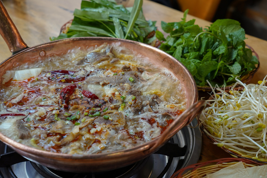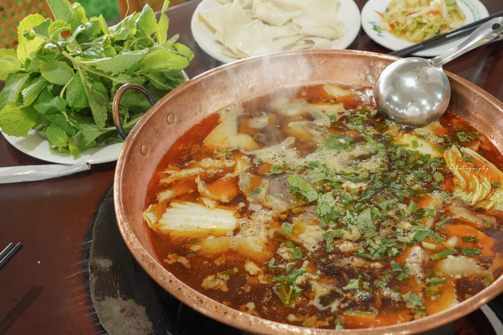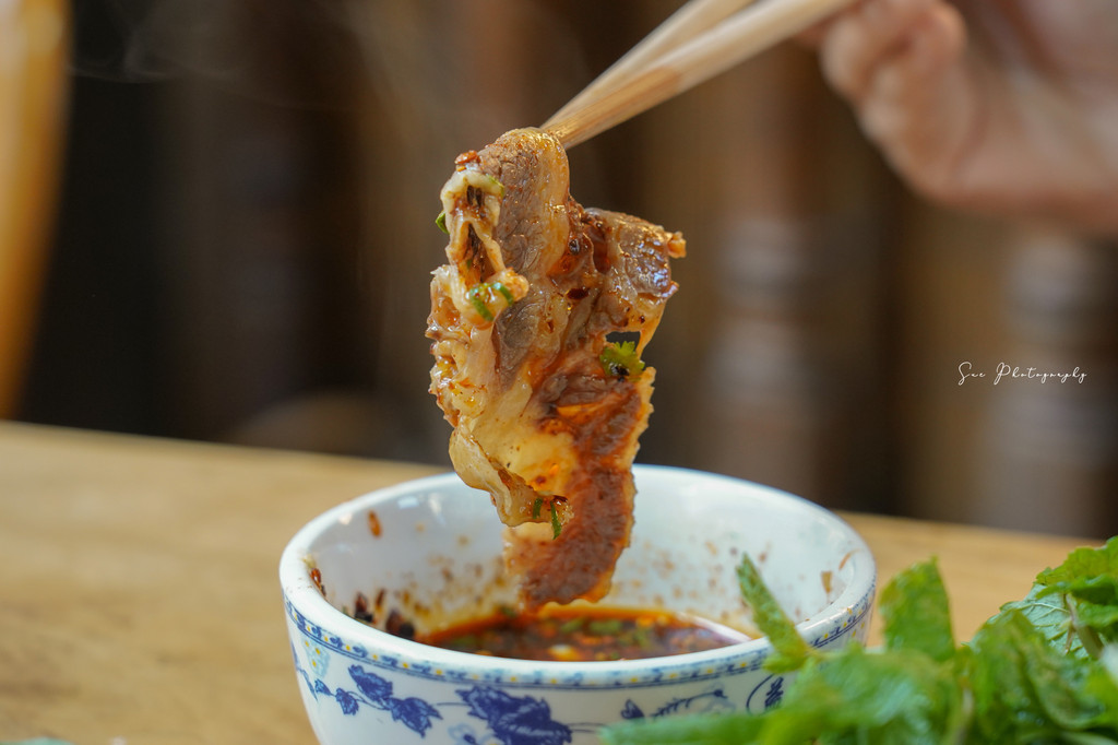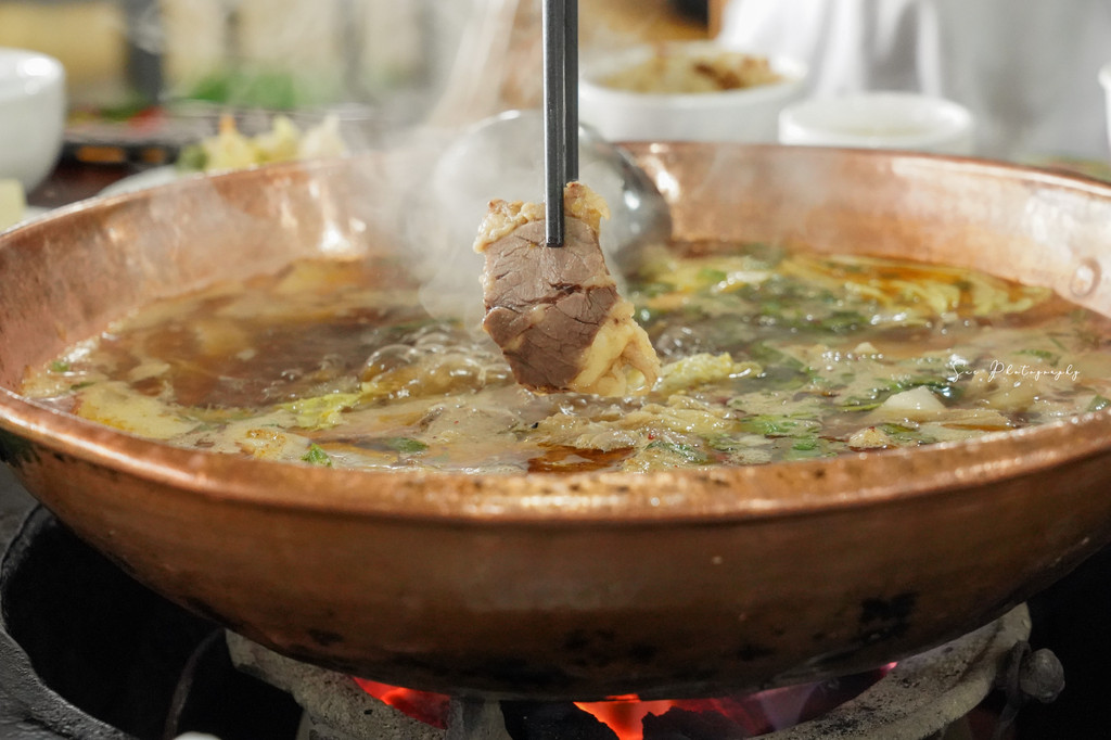 辣油和牛肉汤的绝配融合,在碳炉上咕噜咕噜的翻滚,凉爽的天气里这番大口吃肉的愉快使人倍感幸福。