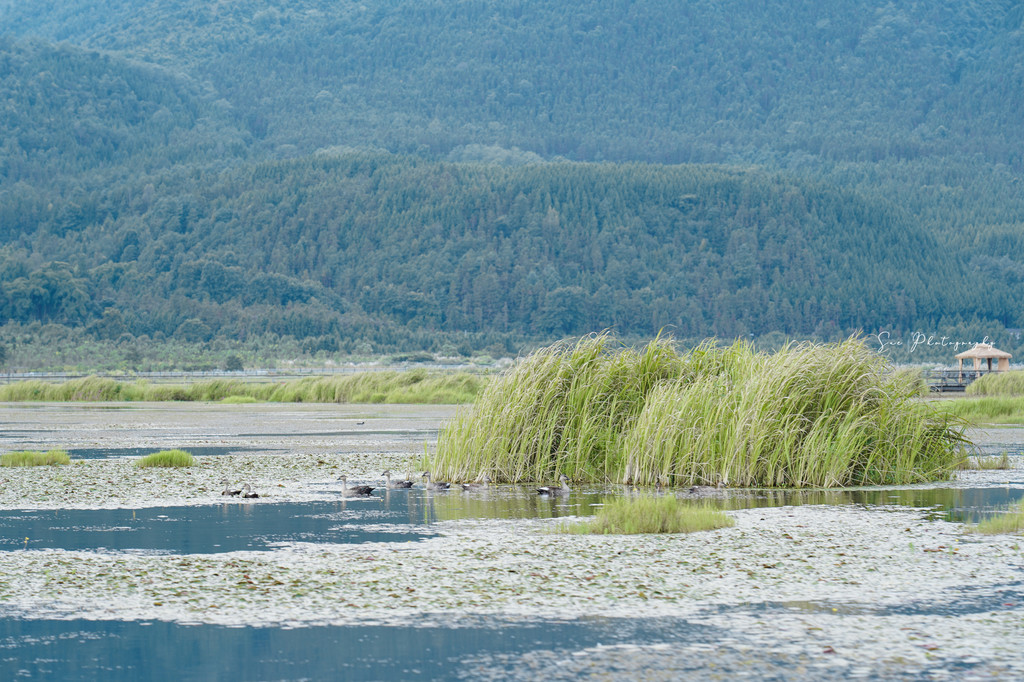 “水草丰美”应该是对这个地方最贴切的形容词,当船慢慢划 开平 静的湖面,飘逸在水中的水草清晰可见,成群野鸭从草从旁游过,如此美好一番光景。
