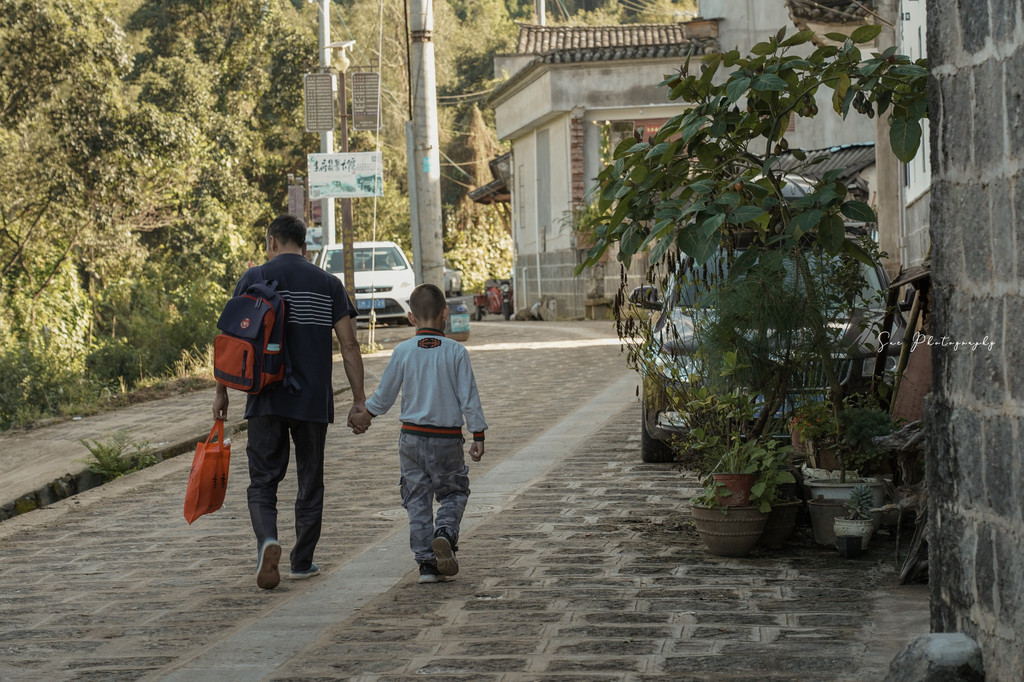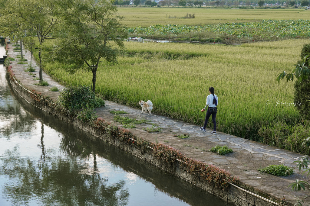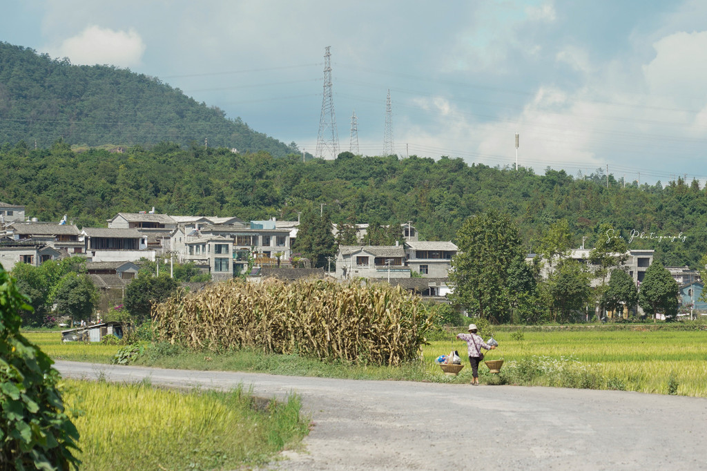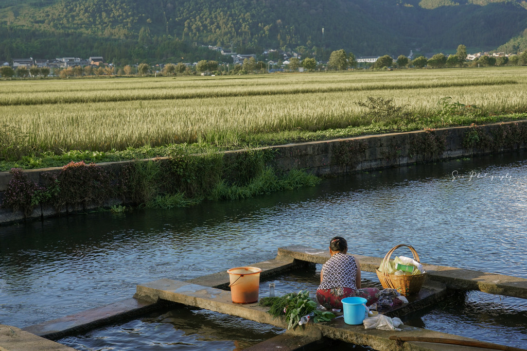 古镇旁一片广阔的稻田,滋养这里一代又一代的居民,走到稻田的另一边,可以更清晰的看见整片依山而起的小城,错错落落,向上生长。