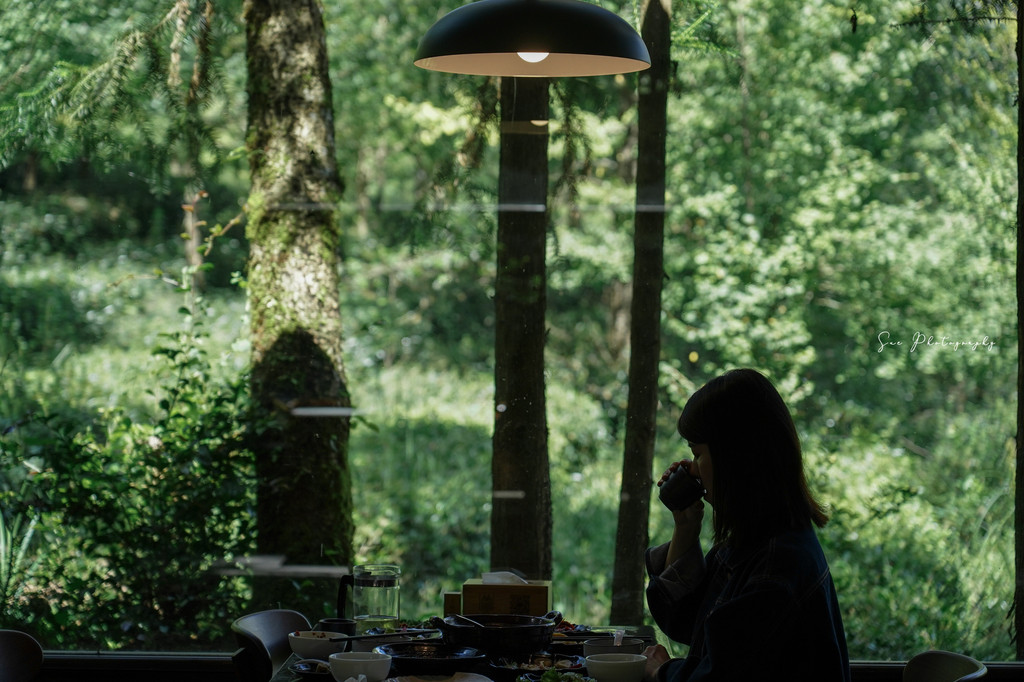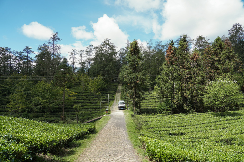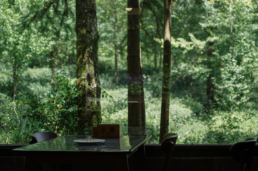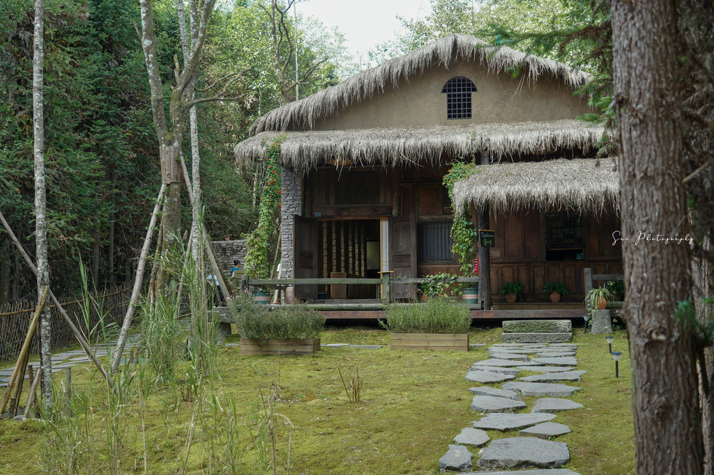 从小村镇的小路一路走进茶园,起伏的山地就已经很养眼了,拐到尽头看到铺着茅草的木屋,有那么一瞬间像在 日本 的乡村里,茅草屋往上走去,就是藏在森林中的玻璃餐厅。