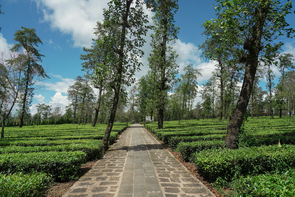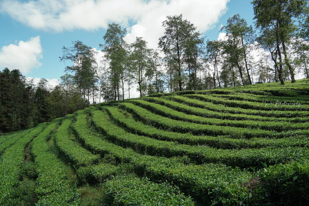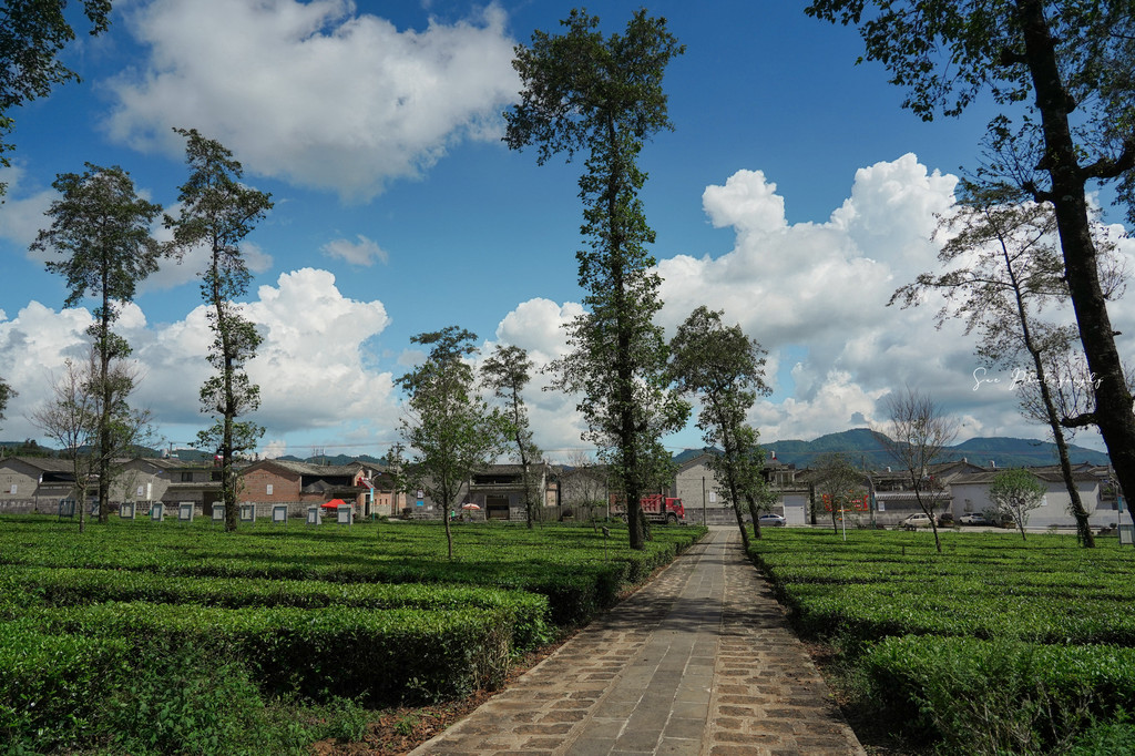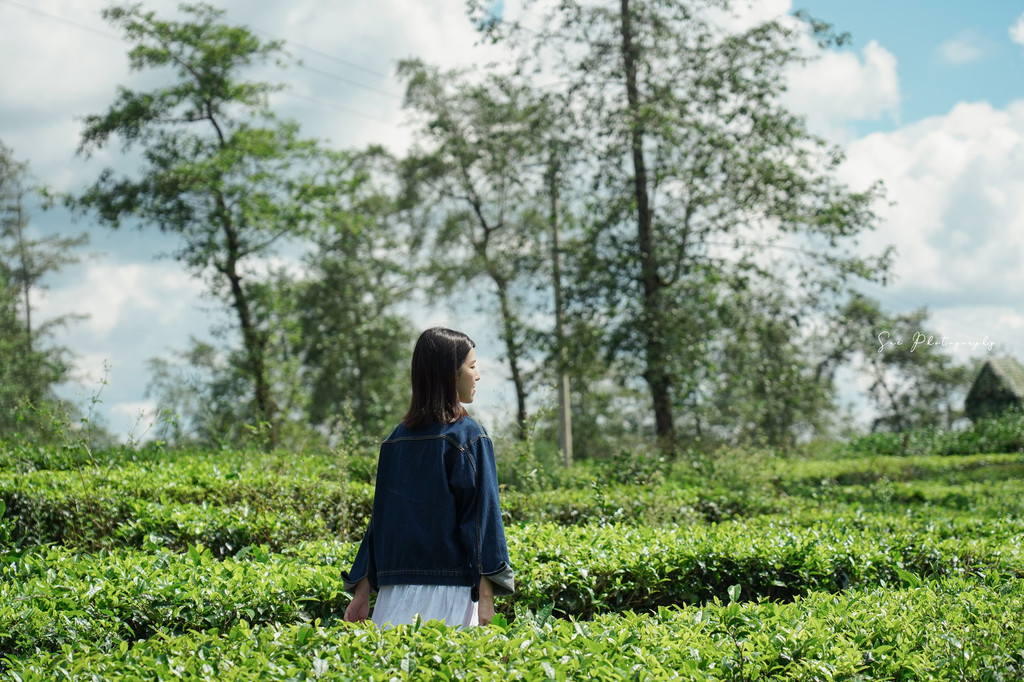 茅草屋外大片的茶园延伸到远处,天晴时是发光的绿意,阴雨时又别有一番意境,走进茶园小路中慢慢感受,拍照也特别好看。