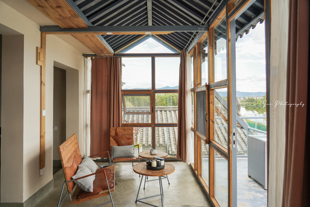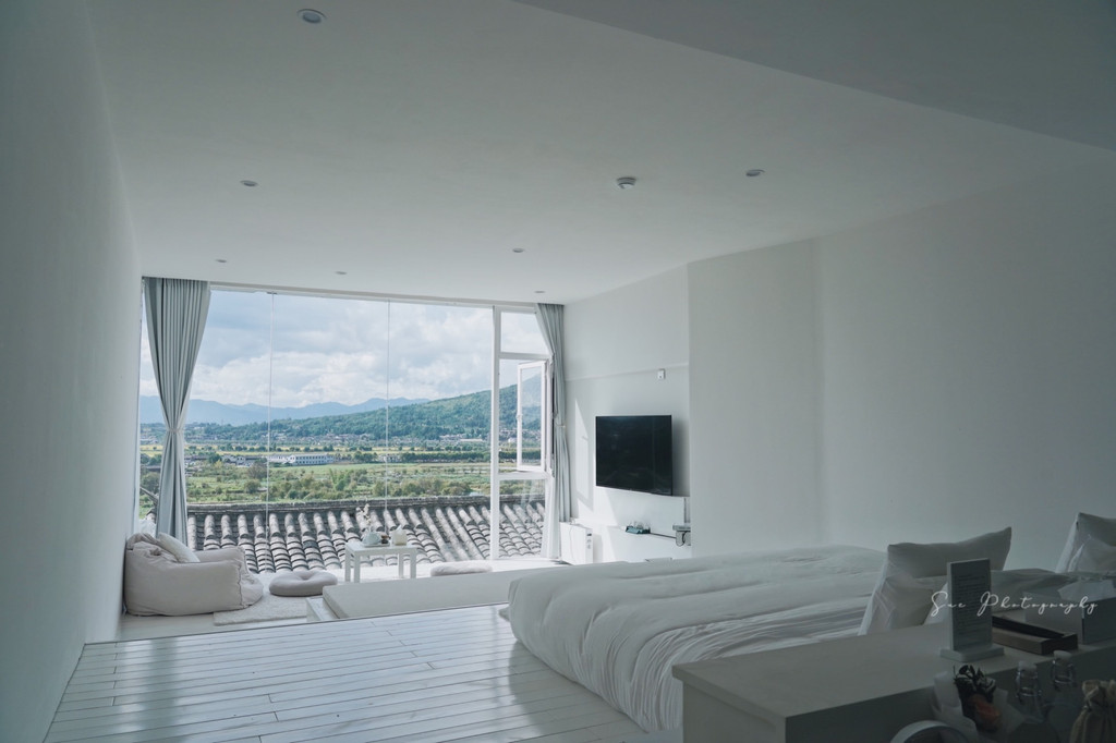 房间如同住进风景画里,每间房都有诗意的名字,设计都不一样,但都有超大落地窗眺望着不远处的田野及 和顺 古镇,房间里的智能化电器,很多细节都很贴心。