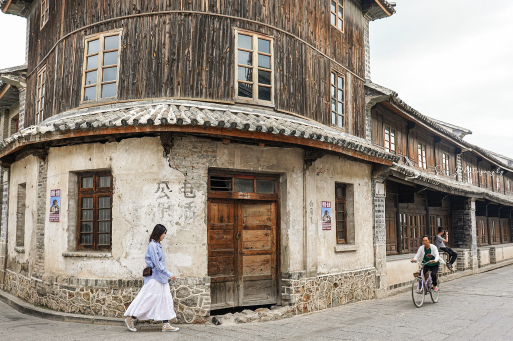 喜洲的地标圆角楼,也是最火的网红拍照位,节假日这个路口熙熙攘攘,只有错开高峰时间才会少点人。