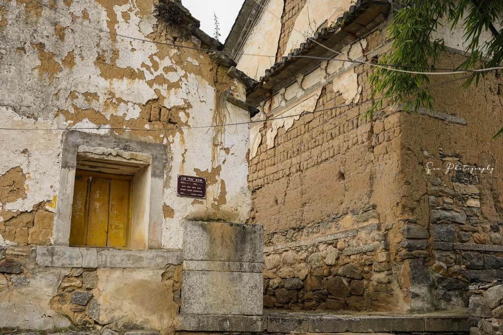 石板路两旁是破旧的老房,墙面都已经褪色掉落,红砖裸露,很清净的同时,也是满目的落寞和沧桑,仿佛完全被遗忘。
