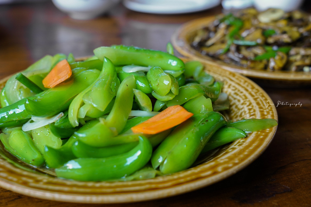 清炒腾冲小角瓜,小角瓜是腾冲独有的蔬菜,形似辣椒却不辣,味道清香可口。