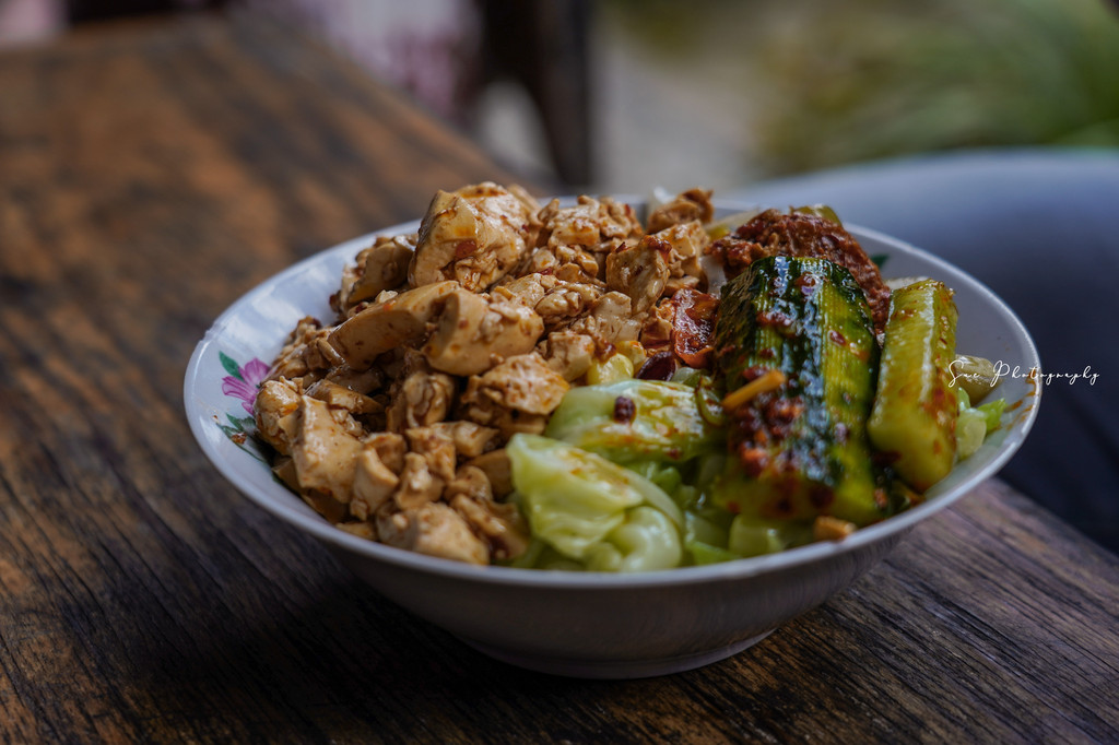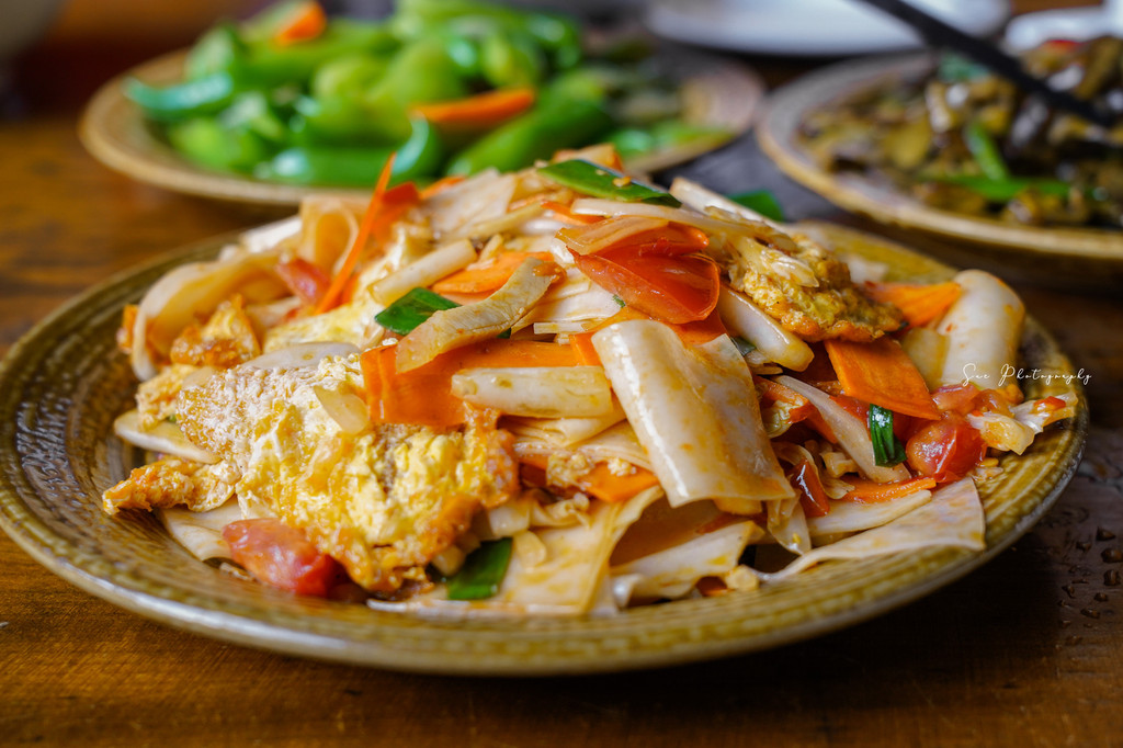 来到了总要试一试,由于加入了番茄、鸡蛋还有腌菜,腊肉,酸、甜、咸、辣味汇集,蛮有新鲜感,但是饵块也特别饱腹,几乎可以当主食了。