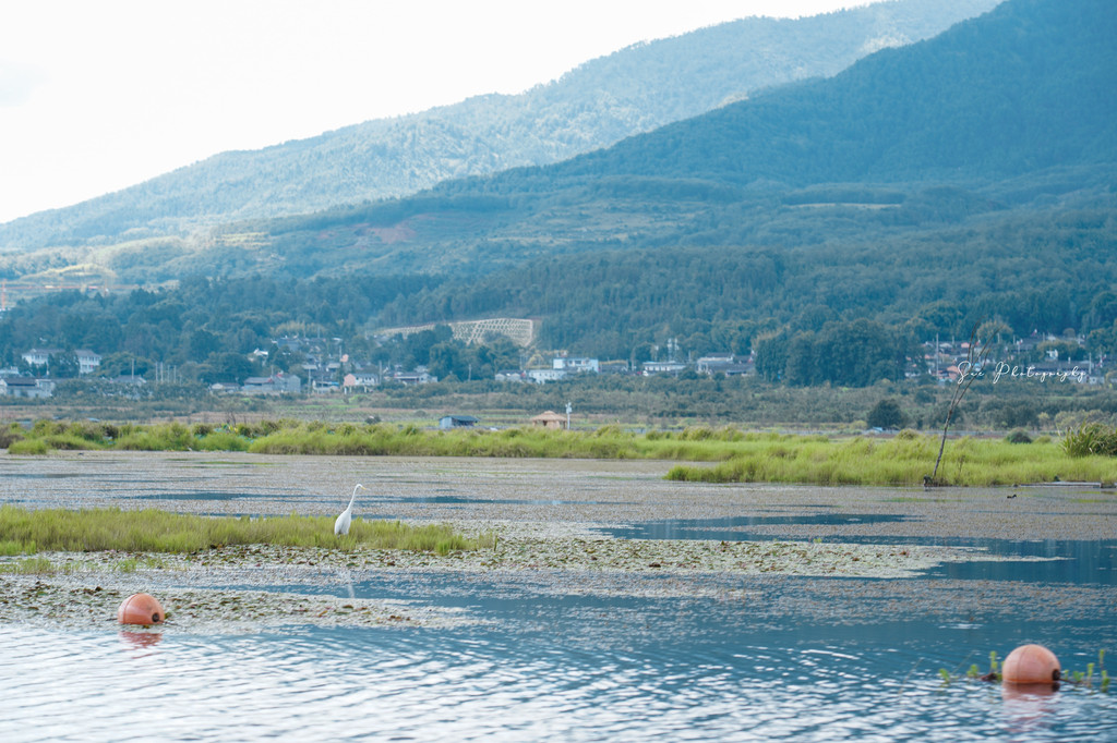 整片湿地景区为长条形,一来一回也有个3公里左右,游船确实能省下一些体力,一路会看到一些叫不出名字的鸟类,下面这只应该是白鹭,伸着长长的脖子独自美丽。