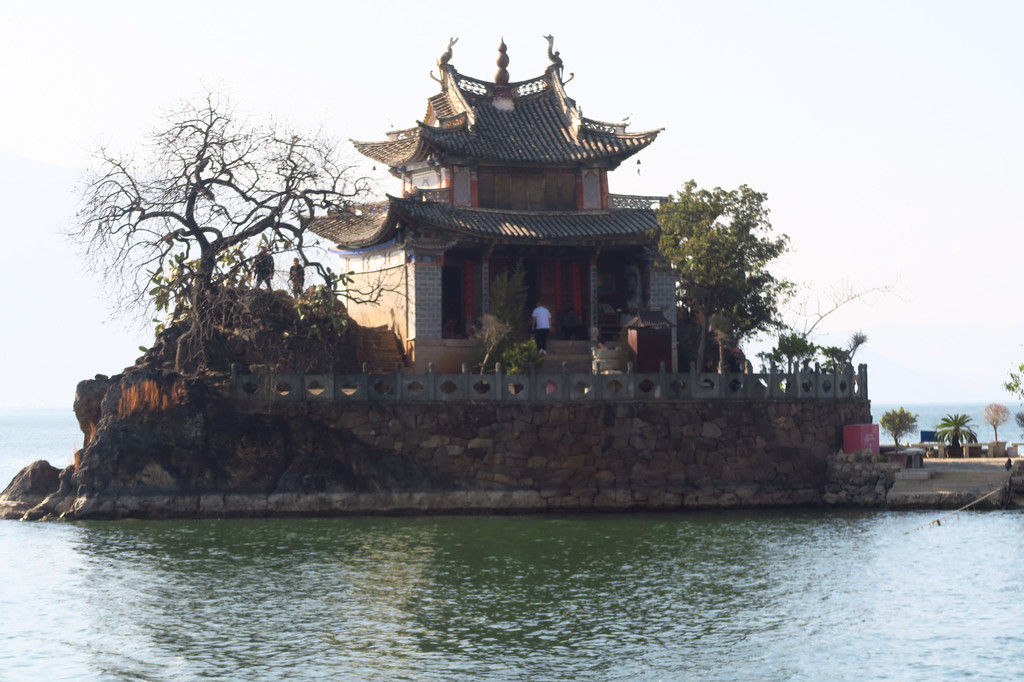 这个就是小普陀,小普陀是一个很小的小岛,就在挖色镇上面,如果要上去可以坐小船上去,有一根绳子牵着。我们没上去,就在岸边看看。