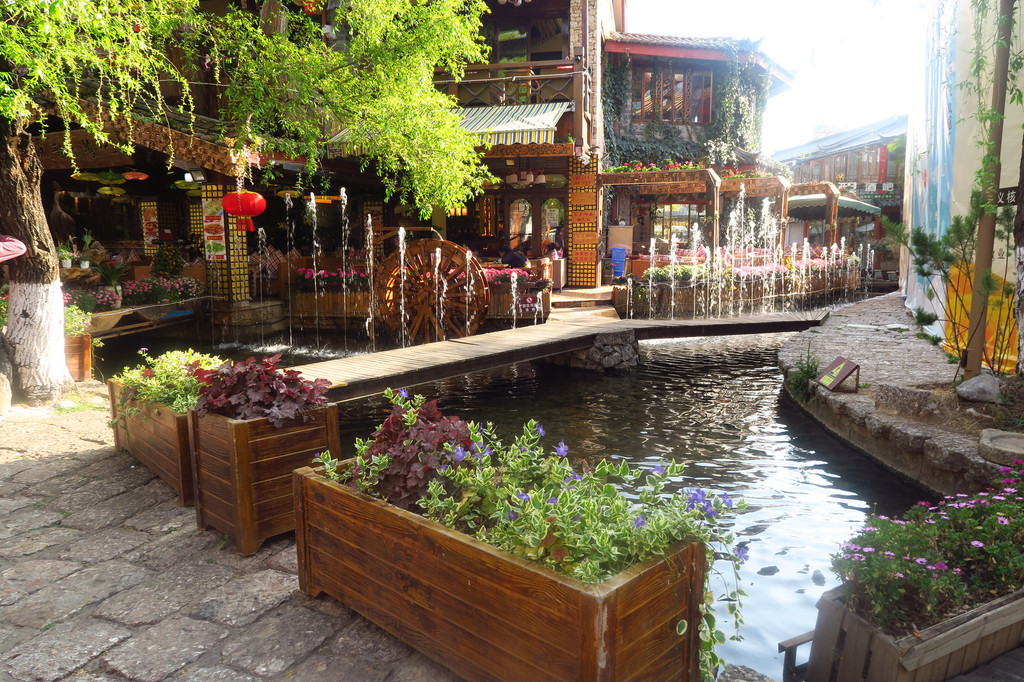 进去之后先是一段两边都是店的古镇街道,这个没必要多逛,直接走过这个玉几桥,过去就是玉几岛,杨丽萍的太阳宫、月亮宫都在那边。