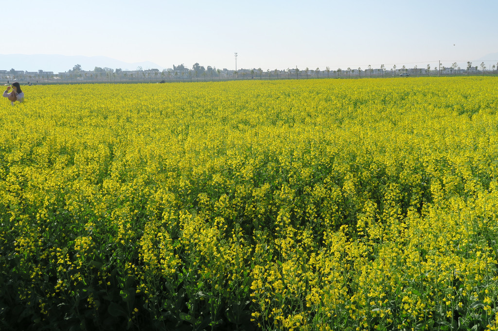 这里就是喜林苑红墙,很有韵味,前面一片油菜花,每年三月份正好是油菜花的季节。还有人在这拍婚纱照。