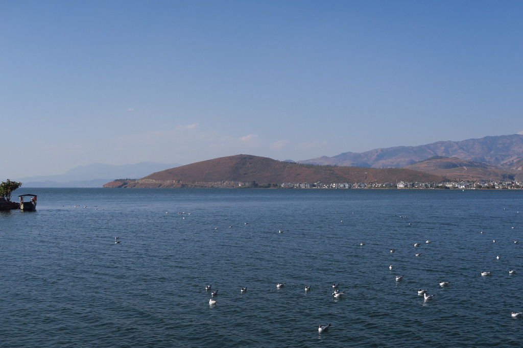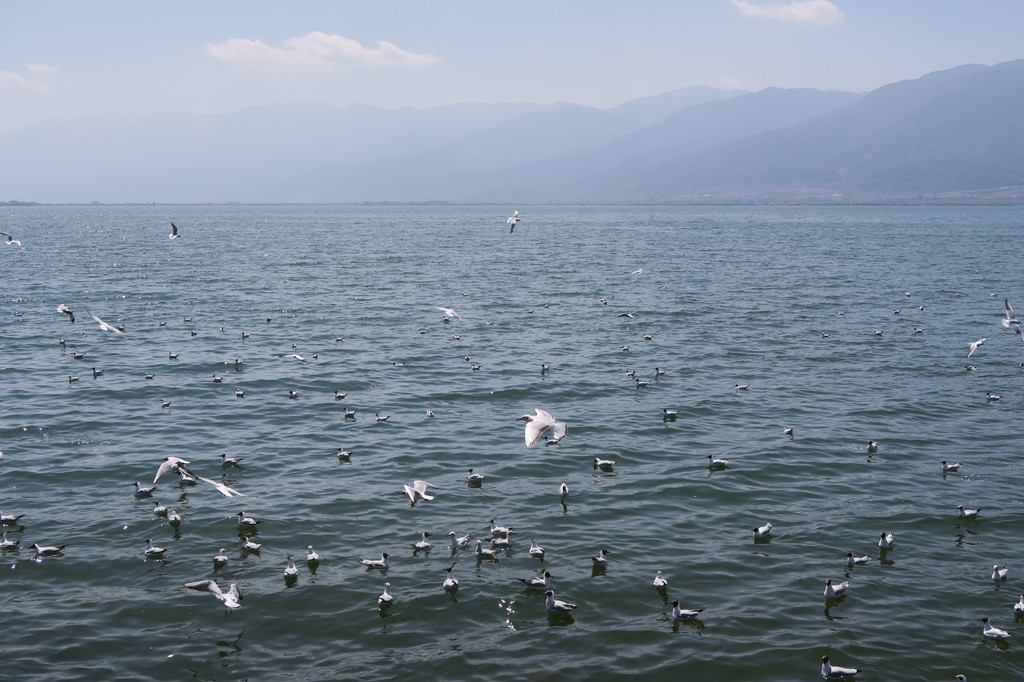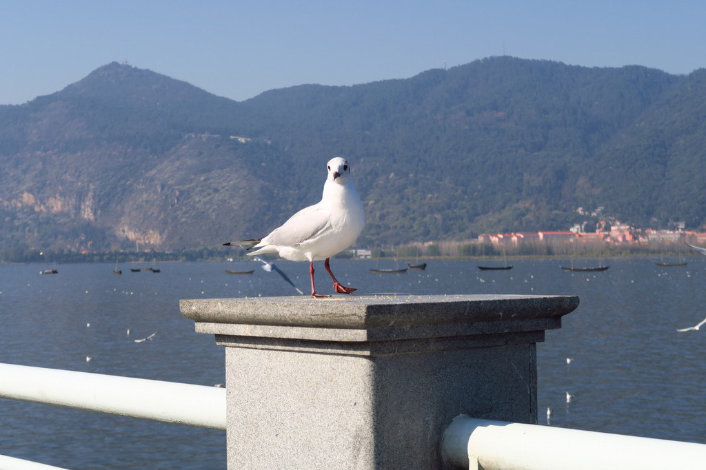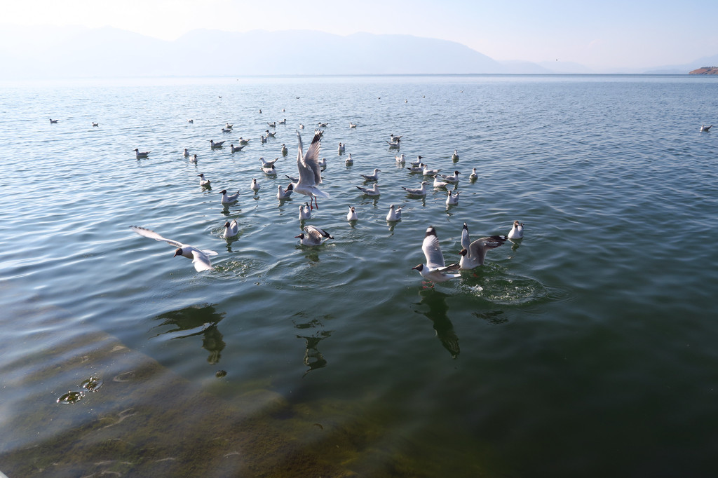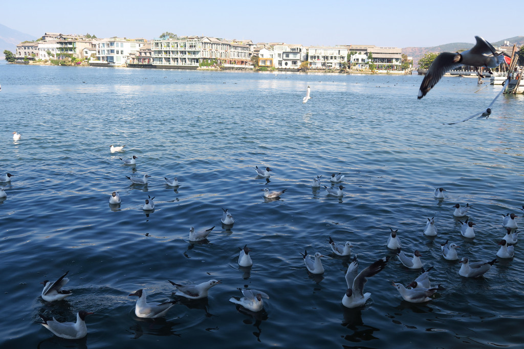 从吃饭的地方打车到滇池海埂大坝,阳光外滩下车,这里是海埂大坝的起点,海埂大坝是红嘴鸥聚集最多的地方,在这里每年飞来7000多只海鸥,是观赏海鸥最佳的景点之一。看海鸥的时间每年的11月初——3月中旬,所以特意赶在这个时候过来看,再迟就没有了。没有了海鸥的海埂大坝就没多大意思了。