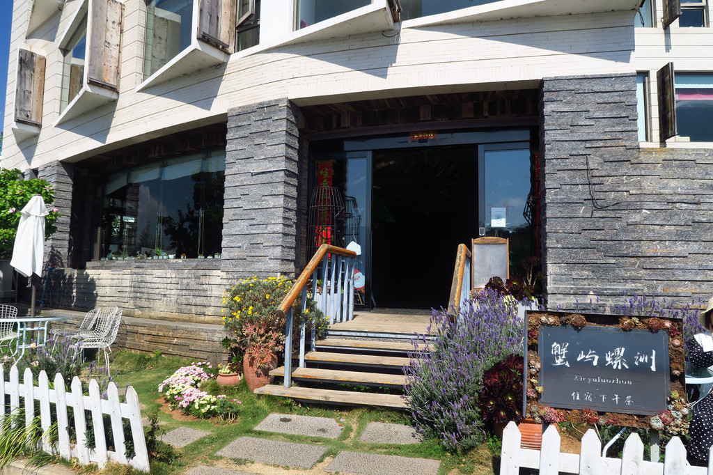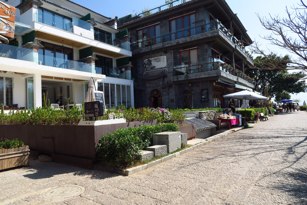 这里是磻溪村的海边栈道,这个村很多s公路,现在因为这个已经成为网红景点。左边是整齐的白色民宿建筑,右边是没有遮挡物的绝美海景。