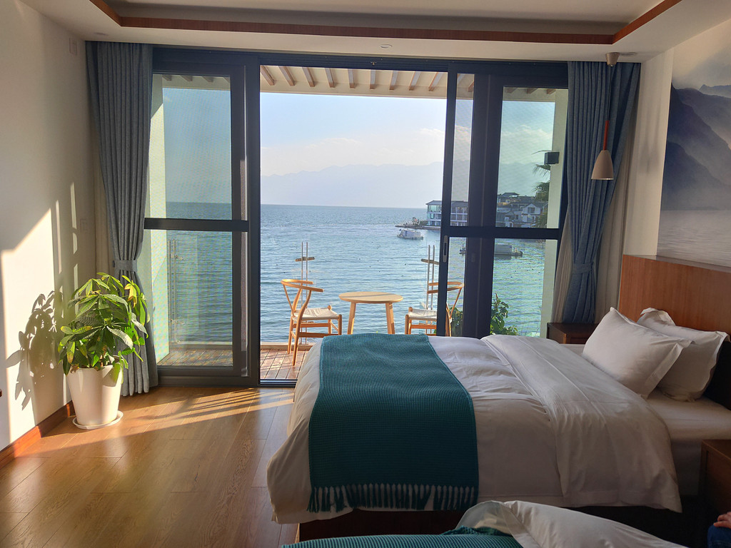 房子就在洱海边,零距离接触洱海。睡在床上就能听到海浪声。