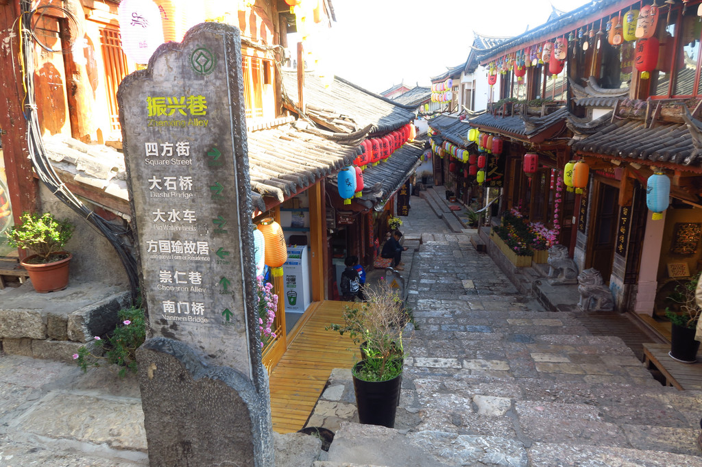 回到丽江古城,因为已经到了12点退房时间,先去客栈退房,把行李寄存在客栈。出来吃午饭,然后去狮子山。