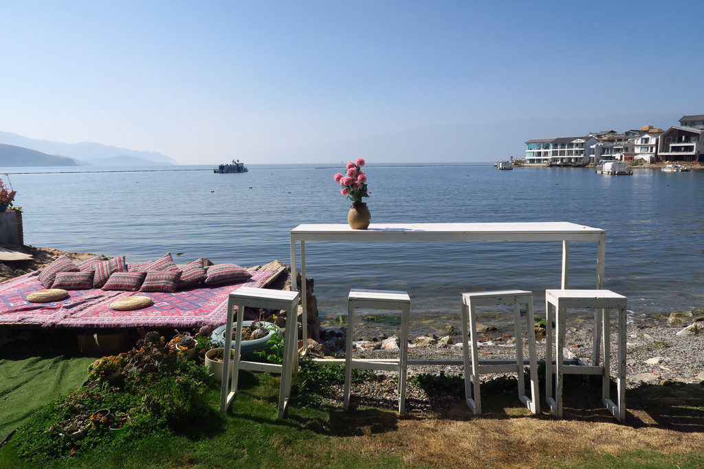 然后在名宿的花园里拍拍照,又去了昨天说的双廊最美的地方逛了一圈,走过去大概10分钟,想看看早上和下午看到的景色有什么不同。回来之后接近中午了。