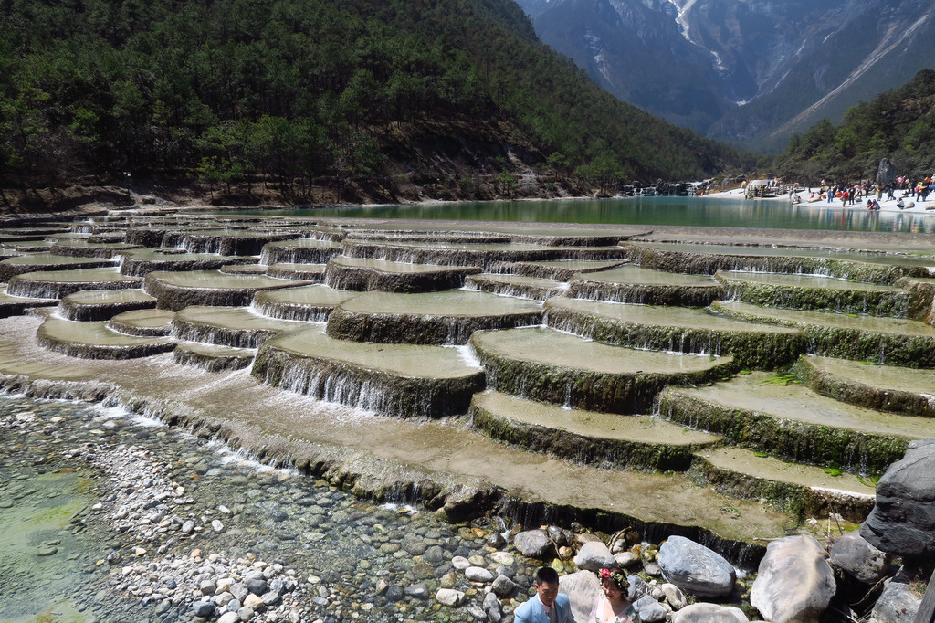 下了车之后往右边走,看了这个白水台了吧,这就是蓝月谷的起点,然后回过头来往刚才下车的地方走,一直走下去,边走边拍。每一段都会有不同的感觉,走到头之后回头到坐车的地方等车就行了,我们在这里玩了3个多小时。