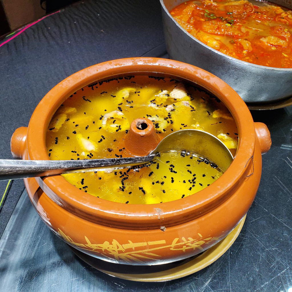 美食推荐:首选“蚂蚁汽锅鸡”,老板对汽锅鸡的做法特别讲究,以至于这道菜非常好吃,鸡肉香甜,黑蚂蚁香脆,两者结合,简直棒极了。不怕虫的可以尝试店里的昆虫拼盘,有蚂蚱、柴虫、小土狗、蛐蛐、大蝎子等,味道也很不错。