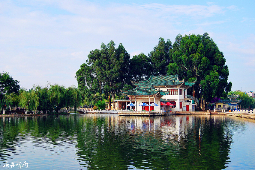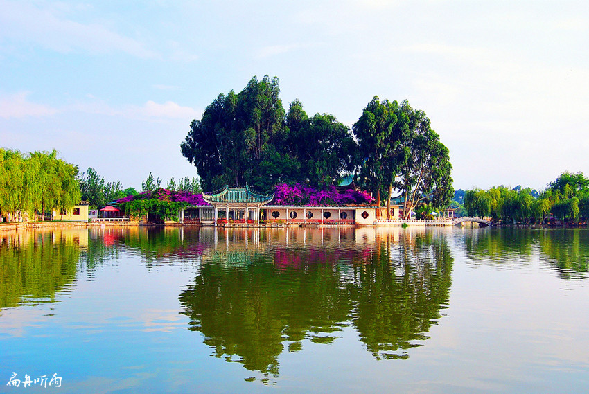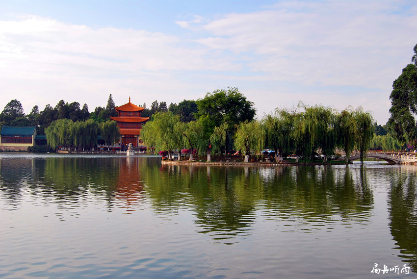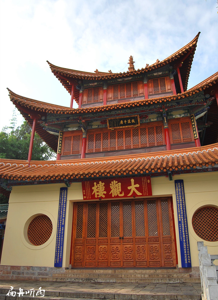 初到昆明,一个夏日闷热的午后,慕名前往大观公园瞻望中国十大名楼之一的大观楼。然而,刚进公园大门,一阵大风掠过,如注的大雨便瓢泼而下。好在身前就是亭台楼阁,也好在大雨持续的时间就十几二十分钟,更好在穿园而过的大观河直通滇池草海,只一会儿的工夫,园内积聚的雨水就一排而空。阴云雨雾在头上稍作停留,闷热的空气顿时清爽起来,蓝天、白云、晴空就这么和骤雨一样说来就来了。