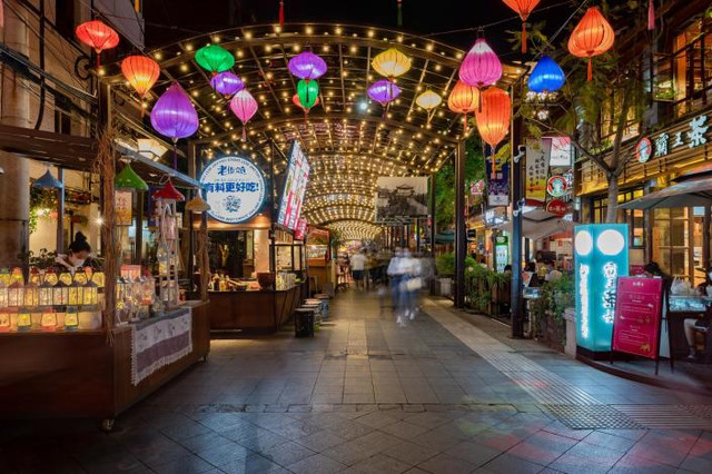 初秋的夜与三五好友走在街头,寻味而去~作为小资风情满满的步行小吃街,这里不仅有云南菜、沪上弄堂上海菜、贡茶,还有各式西餐、日料、东南亚菜,咖啡馆、甜点店更是不可或缺。新鲜的丹麦皇冠三文鱼、万物皆可泡的小清新系泡菜、可爱设计的美味布丁、热辣的昭通小肉串、傣味牛干巴、各式潮汕烧卤体验缤纷牛杂、花式糖面人技艺、阁楼上一杯饮品洞察世间的淡然心境……在这里,是工作之余的开怀与放松,也是家庭琐事之外翻身做主人的畅然小憩。各路美食大展拳脚争相斗艳,对游客来说倒是精彩纷呈的体验呢~