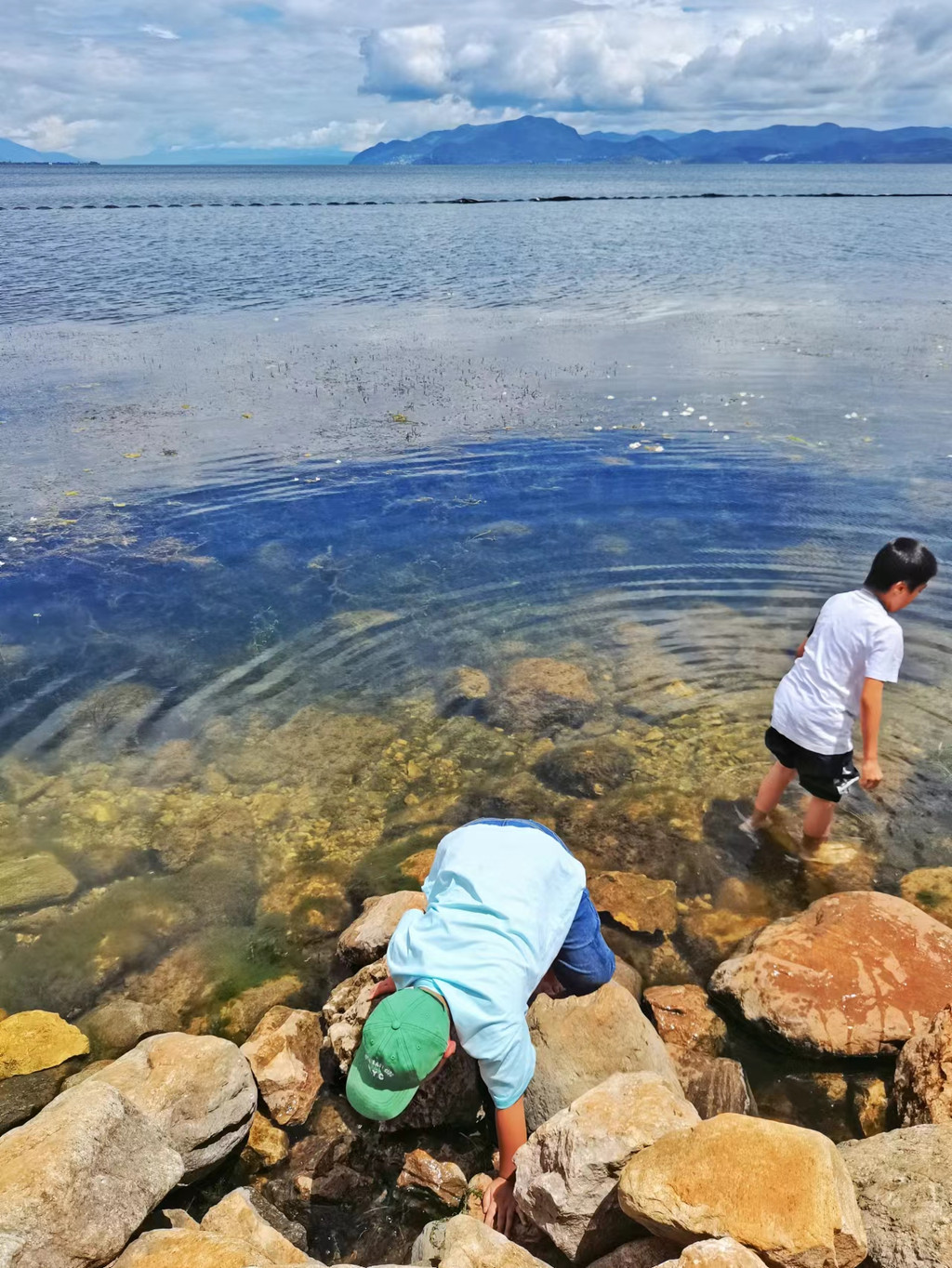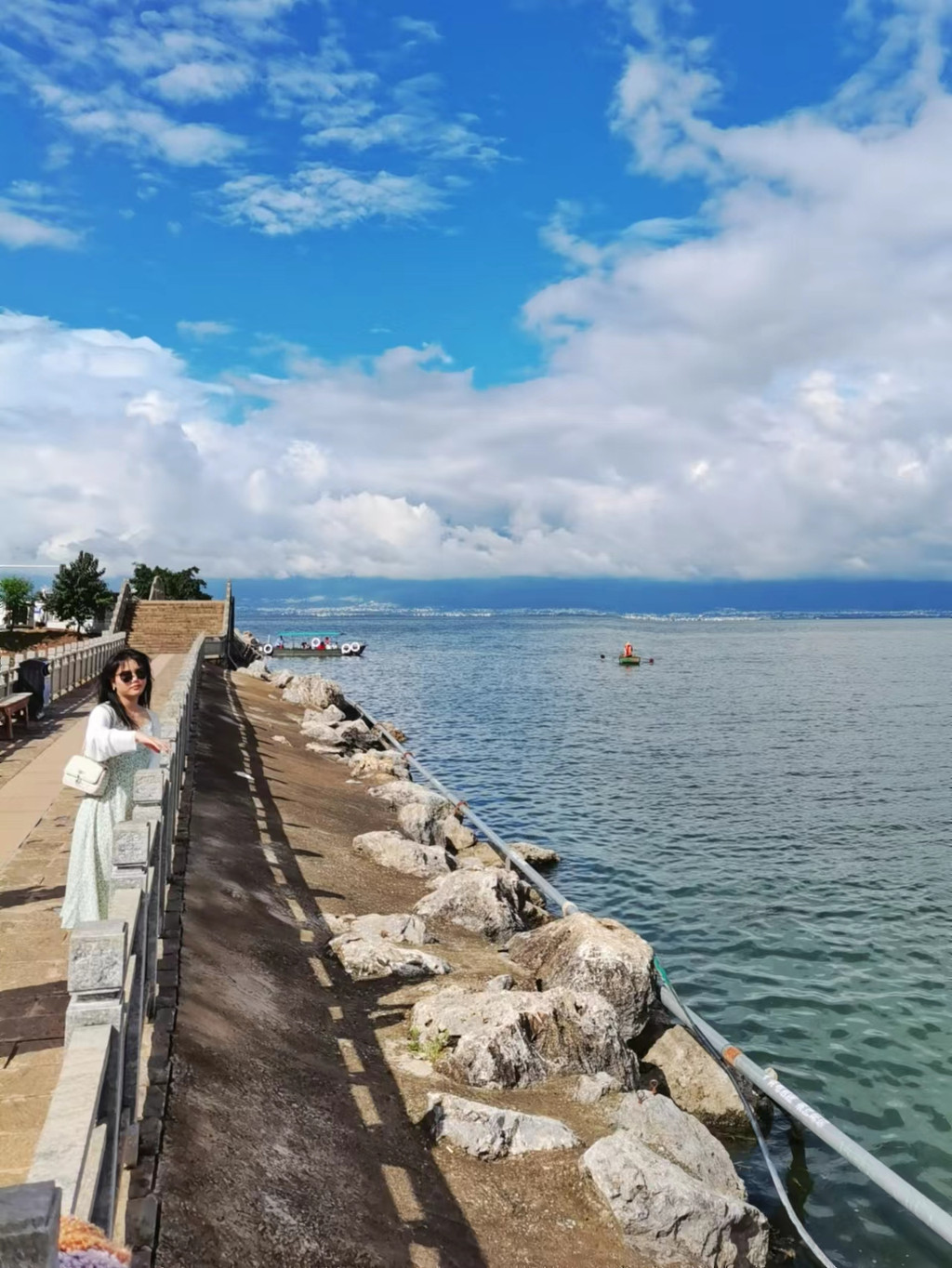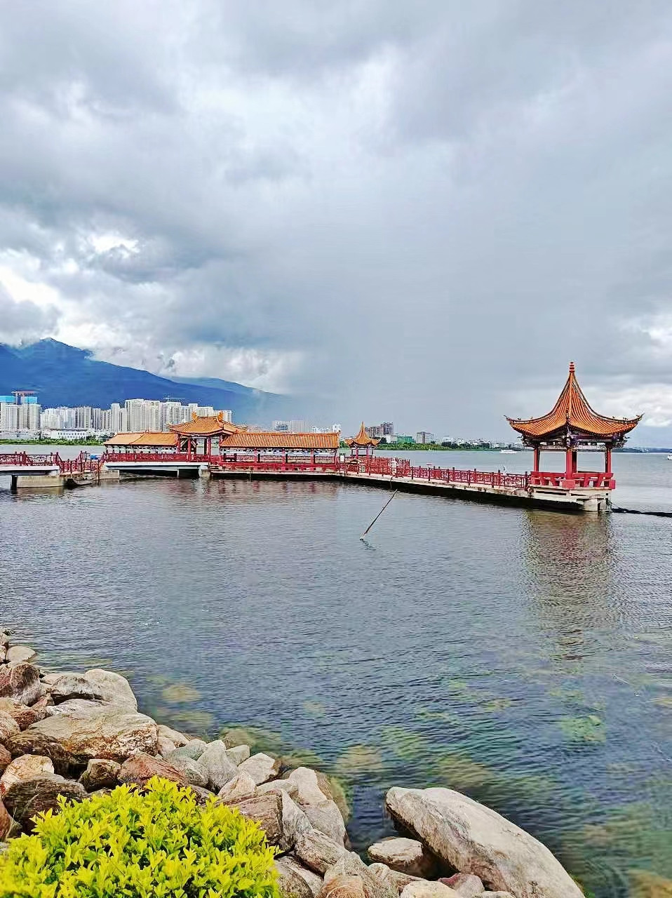 坐在滨海大道的洱海边,吹着海风,看小朋友在湖边悠闲的玩耍,沿着滨江大道一直散步到海心亭,结果在封闭维修。