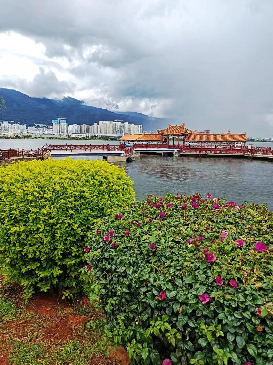 昆明的雨季是明亮的、丰满的,使人动情的。城春草木深,孟夏草木长。昆明的雨季,是浓绿的。草木的枝叶里的水分都到了饱和状态,显示出过分的、近于夸张的旺盛。”天空突然下了场小雨, 恰好又读到汪曾祺老先生在《昆明的雨》中的描述,这是多么应景啊!