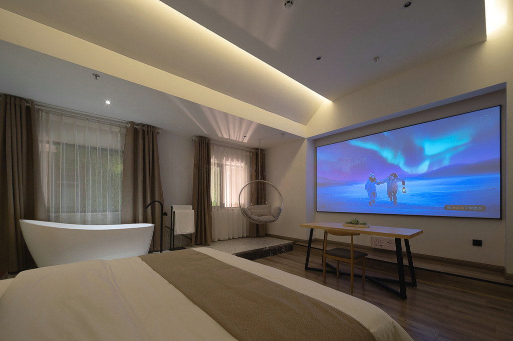 自带院子位置很好找,小孩可以在院子里随意撒欢,不用刻意溜娃,也适合老人晒个太阳溜个神。整个酒店空间环境宜人,自然气息浓厚。酒店很唯美,很适合出片儿,在这里住上几天,可以享受这里的惬意生活,晚上还可以躺着床上看个投影大片