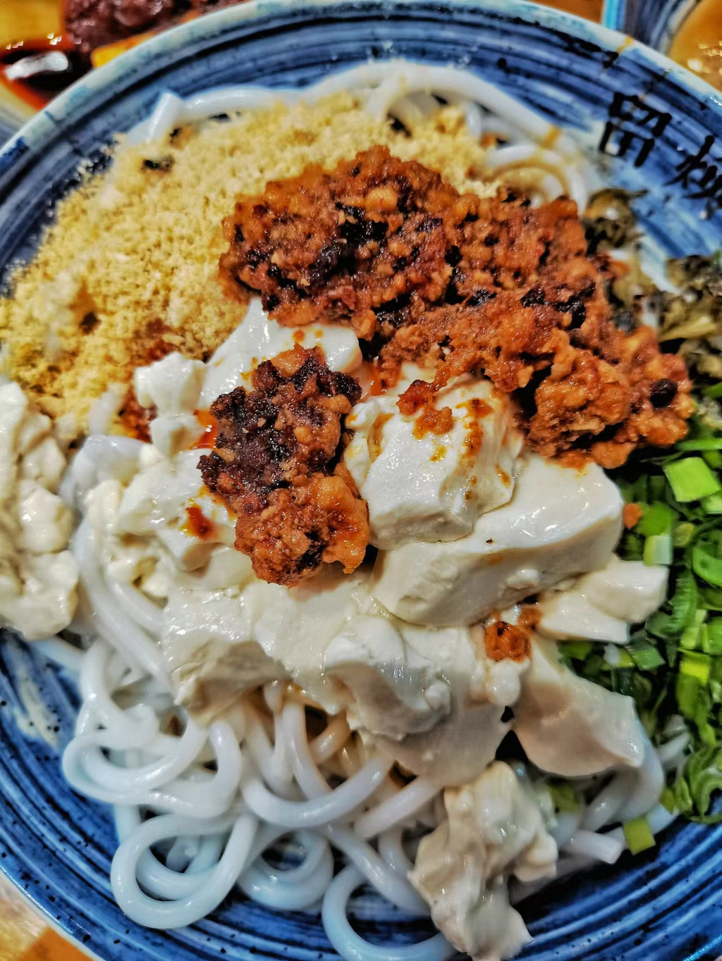 豆花米线让你打开新世界,米线裹住豆花拌着调料,肉香浓郁,鲜辣爽口。