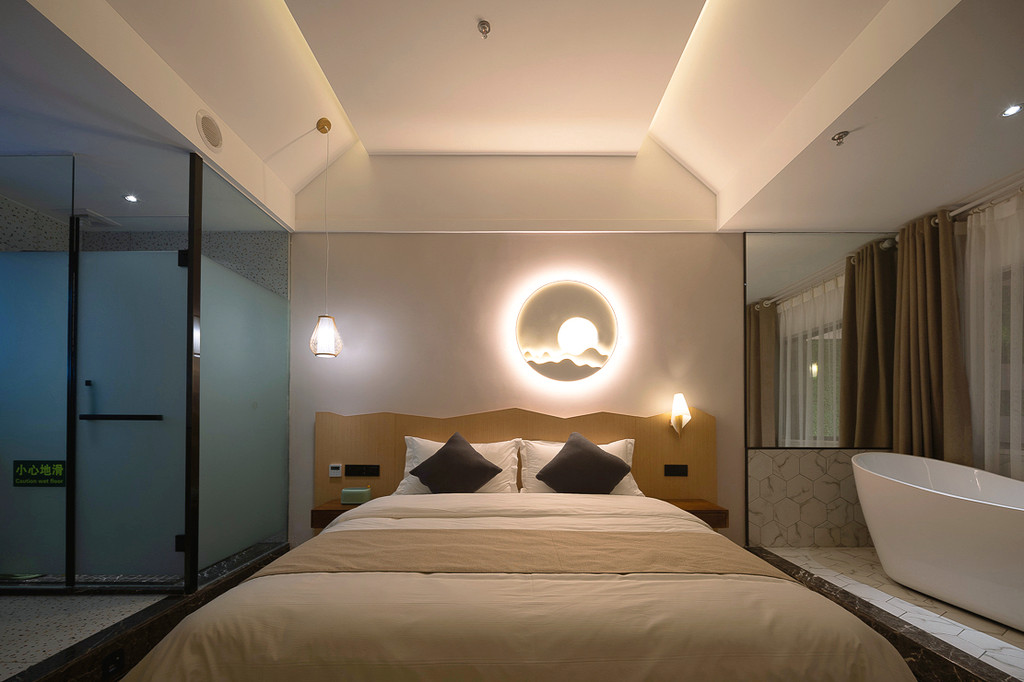 酒店设施设备完善,各种类型的房间可以满足不同需求。有影院房,复式房,180°观景浴缸房等各类主题房型。