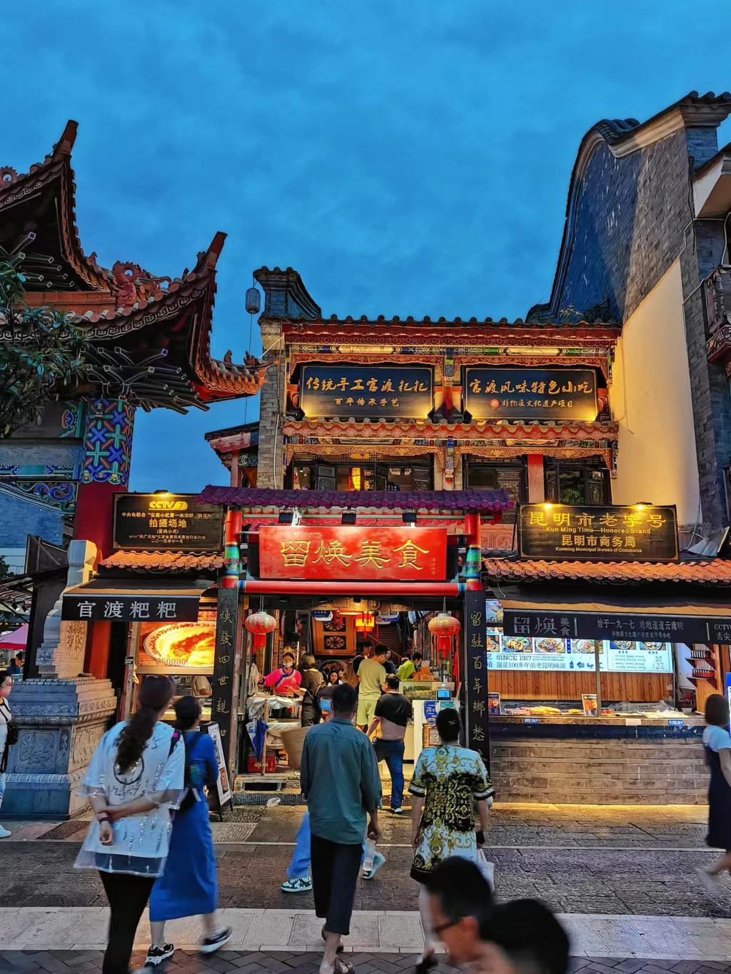 傍晚的金碧广场,已经记不得多久没听过这么热闹的人间烟火声了,在蒙蒙细雨中逛逛夜市,感受春城的夏天,皆是温柔浪漫。