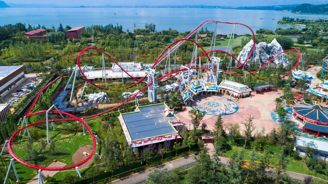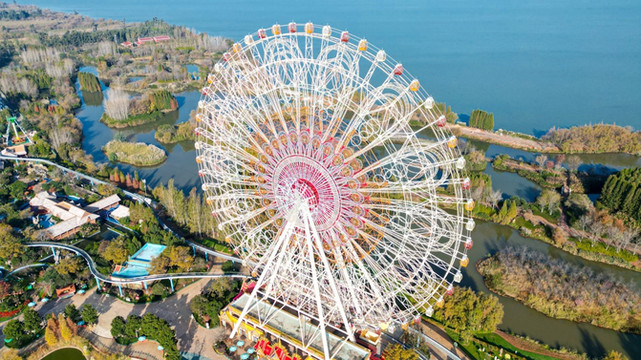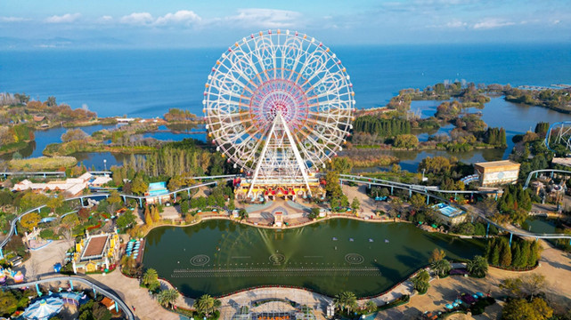 如果想一览滇池美景,还可以乘坐高空飞翔。集旋转、升降、倾斜变换为一体,当伞形转盘和中间转台错位旋转时,塔身徐徐上升,同时转盘摇动,飞椅呈波浪状荡漾,游客犹如高空飞翔,体验海阔天空,美轮美奂。